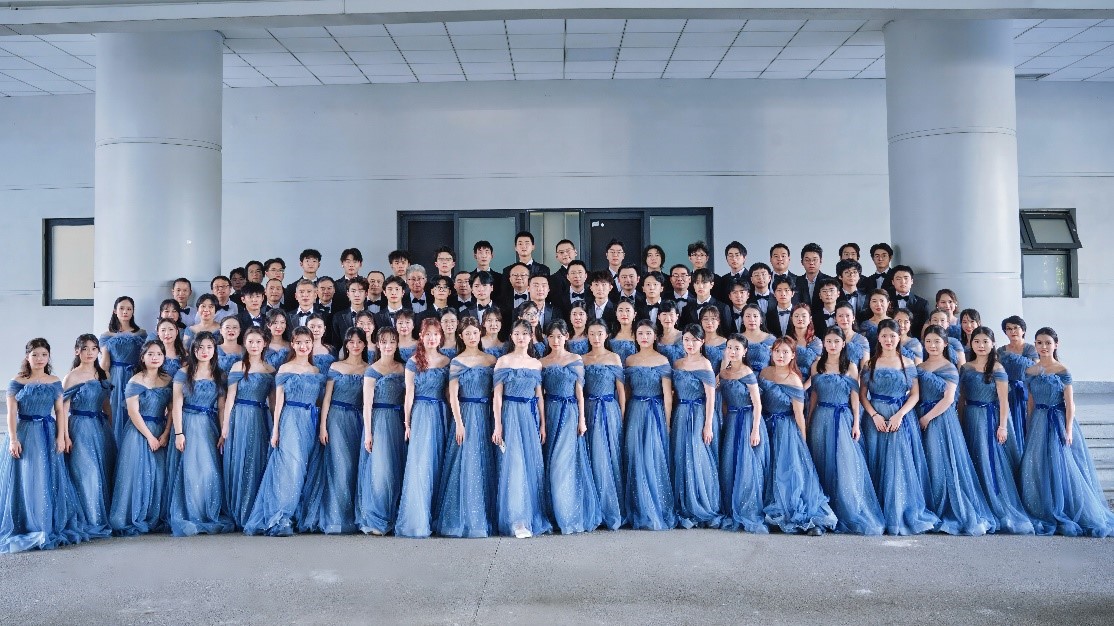 全体党政领导和师生组成的100人合唱团共同演唱歌曲《如愿》,向新中国成立75周年献礼。