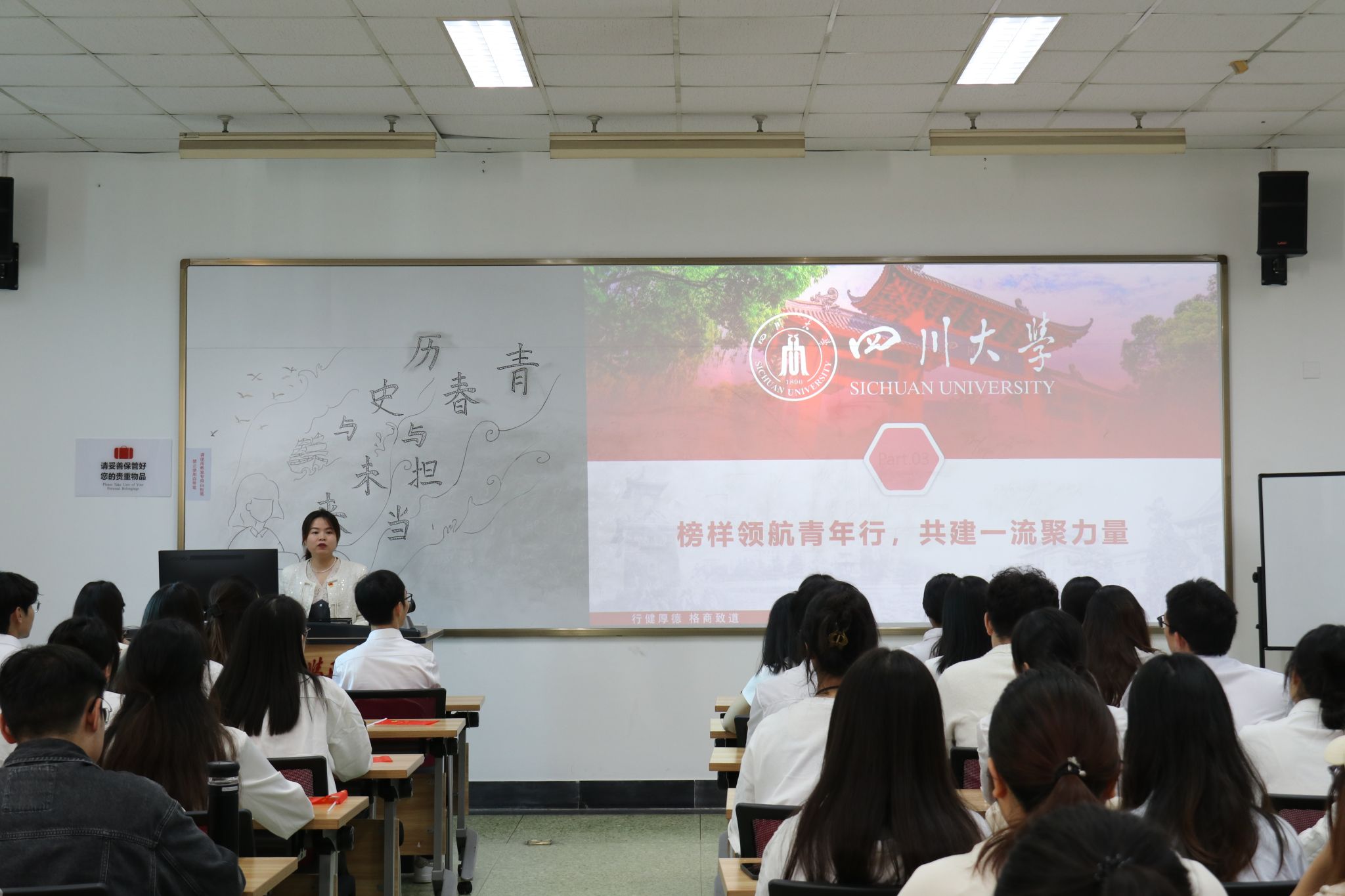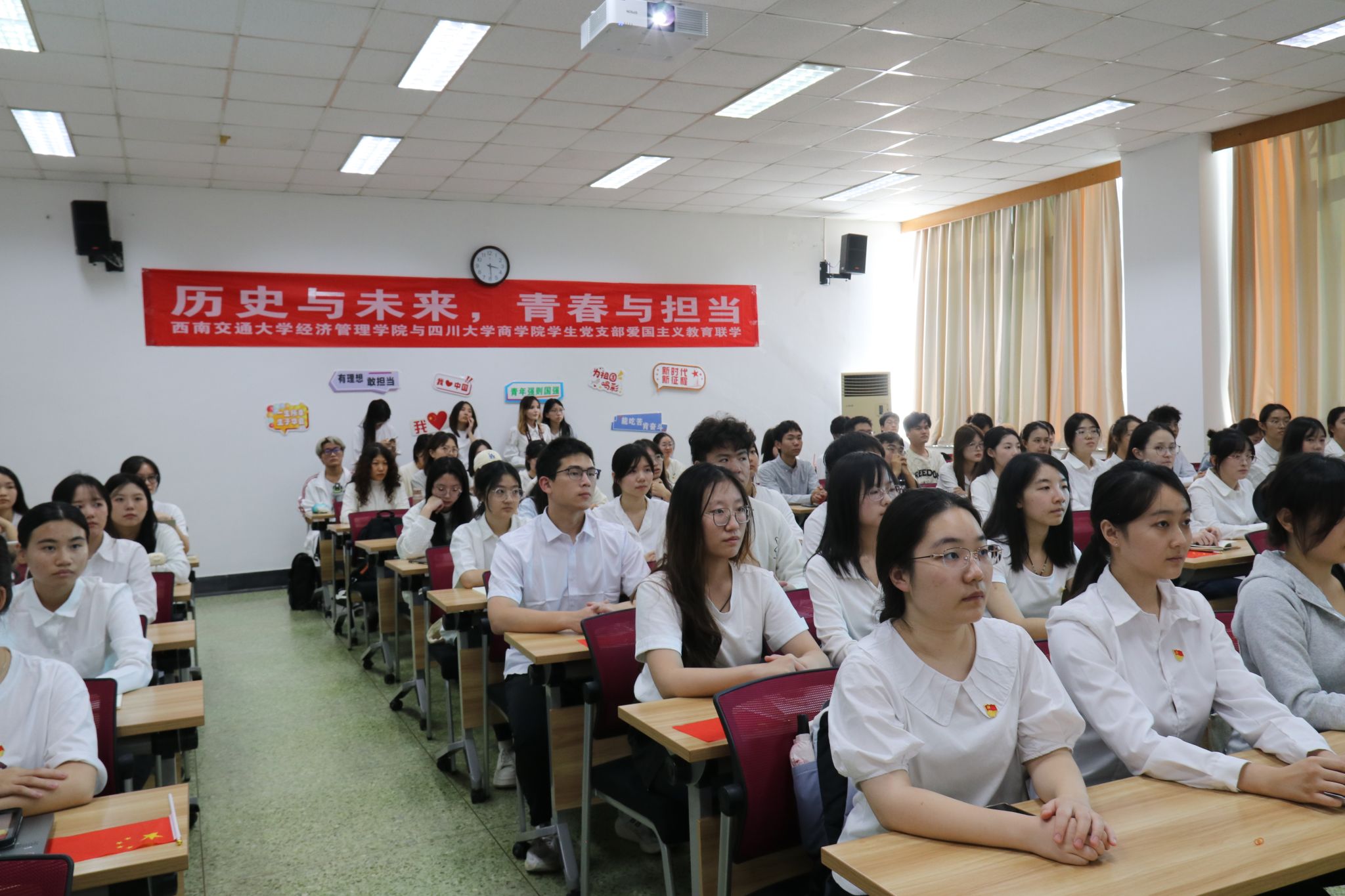 在讲解环节结束后,两校的支部成员分别上台分享了川大杰出校友江竹筠、张培爵、毛英才和交大优秀校友茅以升、竺可桢、马增玉等的事迹。这些校友们在不同的历史时期,都曾为国家和民族的发展做出了杰出的贡献。他们的故事深深感染了在场的每一位同志,激发了同志们为国家和民族奋斗的热情。随后,在领唱人的带领下,全体成员合唱了红色歌曲《如愿》,歌声嘹亮,振奋人心。