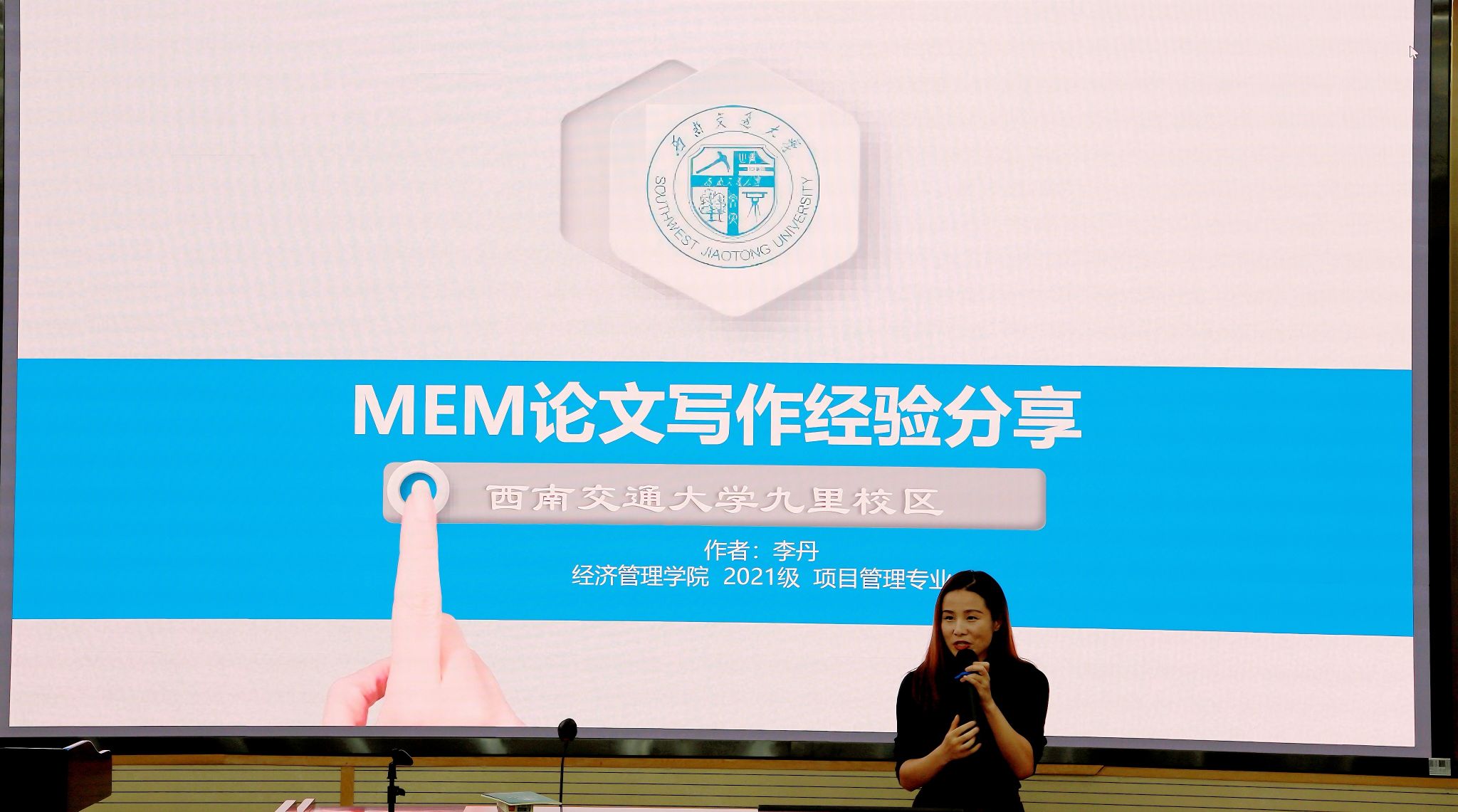 西南交通大学2021级MEM李丹,分享了论文写作经验,以及与如何与导师进行沟通等。她谈到,在学习过程中要秉持一个好的心态,勇毅自律前行;在答辩过程中,要虚心接受和记录答辩老师的批评指正、按要求修改调整。