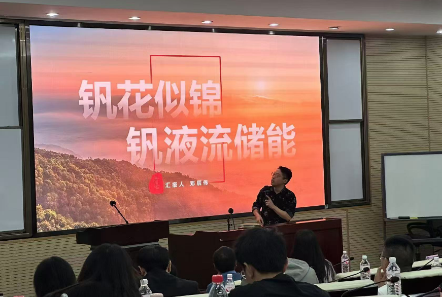 2023级MEM邓辰伟以国家政策文件为依托,介绍了储能行业的发展前景,并强调了新型电力系统构建的“清洁化、柔性化、分散化、数智化”的四大要素,而“柔性化”则是储能行业发展的关键所在,由浅入深介绍了钒液流储能的技术原理、企业发展与典型项目,让同学们增加了对储能相关行业知识层面的了解。