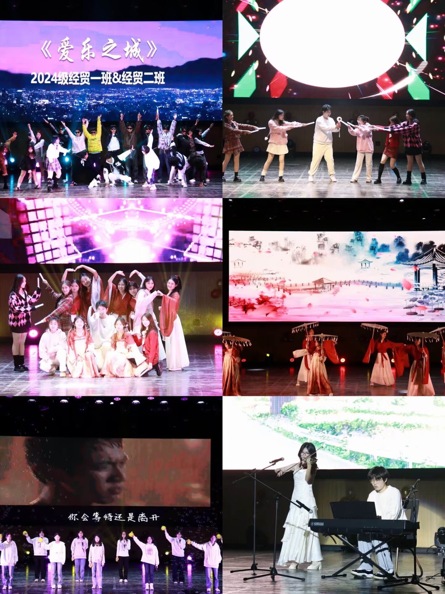 晚会在欢声笑语和热烈掌声中缓缓落下帷幕,而精彩的大学生活画卷正刚刚展开。这场晚会不仅是视听的盛宴,更是经管精神的热情传承。祝福2024级经管人经世致用、管智卓越。让我们一起,同心致远,共赴未来!