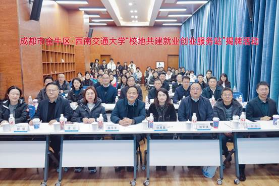 与成都市金牛区校地共建就业创业服务站揭牌活动在九里校区举行。西南交通大学党委副书记高平平,成都市金牛区人民政府副区长徐苒鑫,学校相关部处领导,金牛区委、区政府领导,项目运营单位负责人,中铁二局等企业代表参加仪式。仪式由易游体育官方网站
