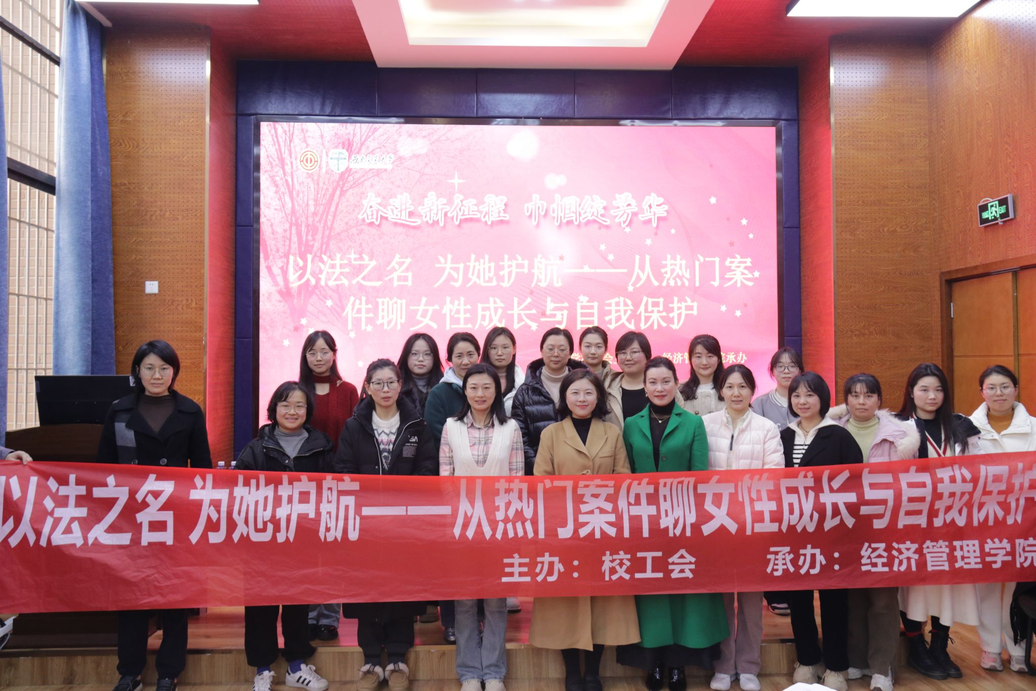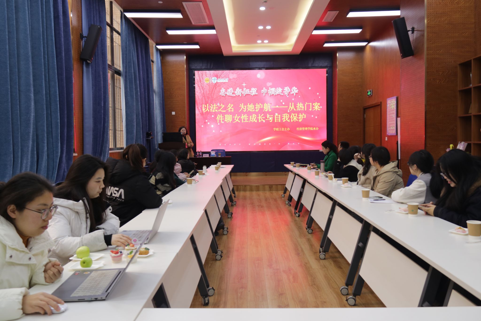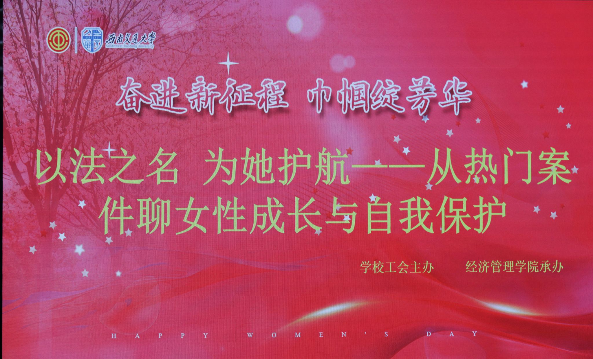 阳春三月,正值第115个国际妇女节来临之日,为提高高校女性教工的法律素养,增强法治观念,促进女性教工群体的法律自我保护意识和能力,2025年3月7日下午2点30分在九里校区0218教室开展了一场“以法之名 为她护航-从热门案件聊女性成长与自我保护”专题分享活动,活动邀请了四川省十佳公诉人、优秀律师蔡蕤洁作主题分享。活动由西南交通大学工会主办,易游体育官方网站