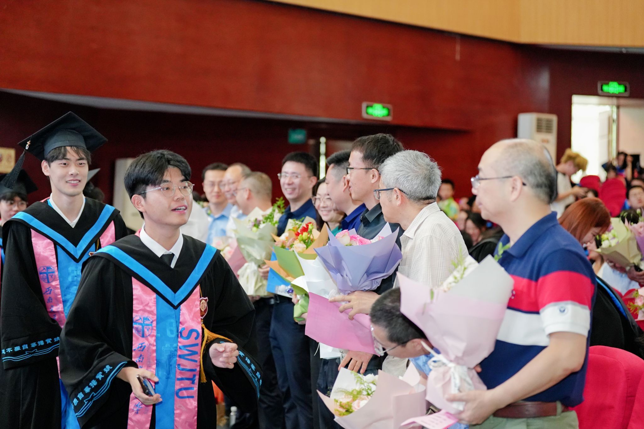 桃李不言,下自成蹊。毕业生们手捧鲜花,将花束轻轻递到老师们手中,对辛苦付出、悉心耕耘的老师们致以最崇高的敬意和最真挚的感谢,现场响起经久不息的掌声。