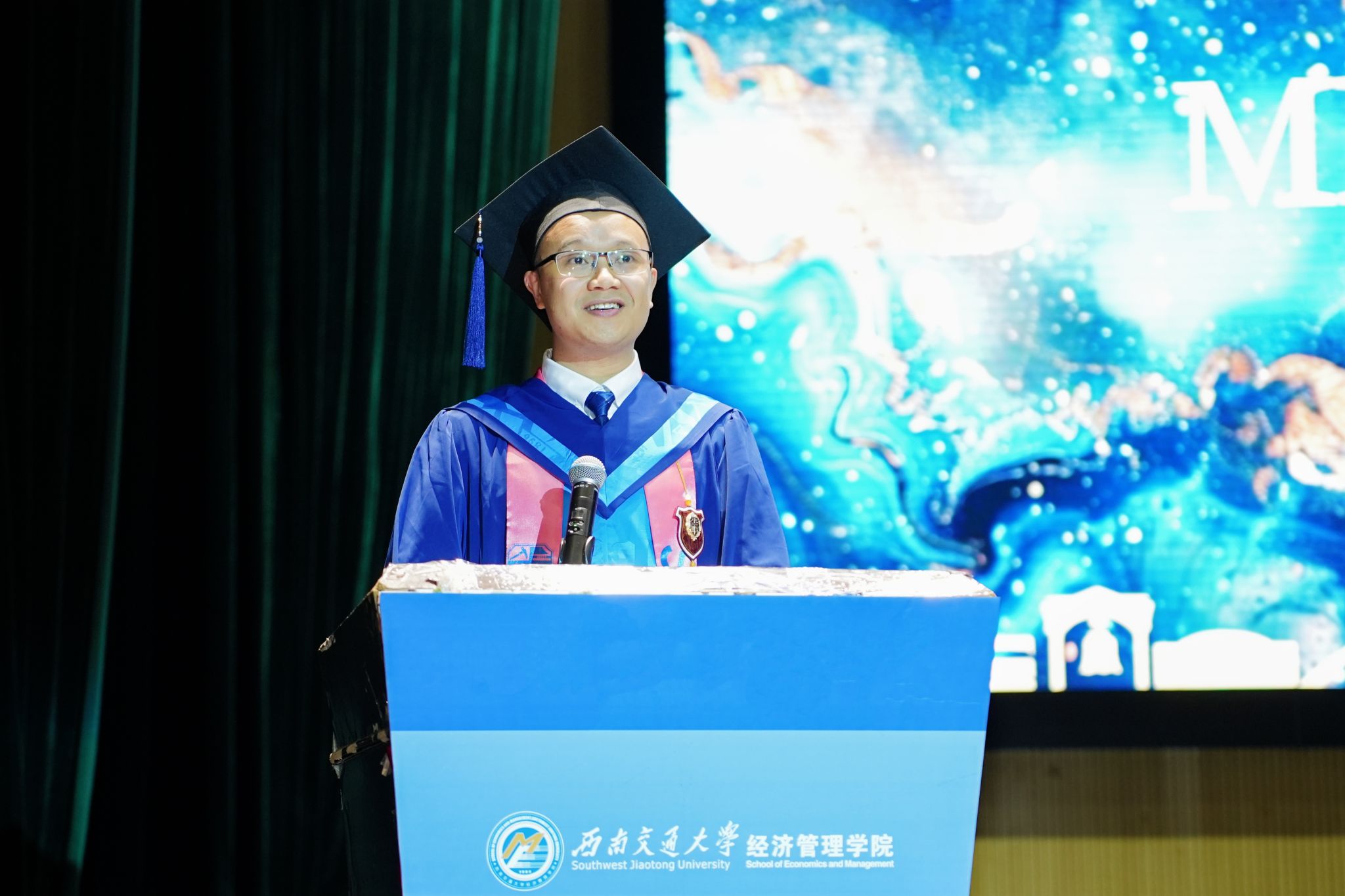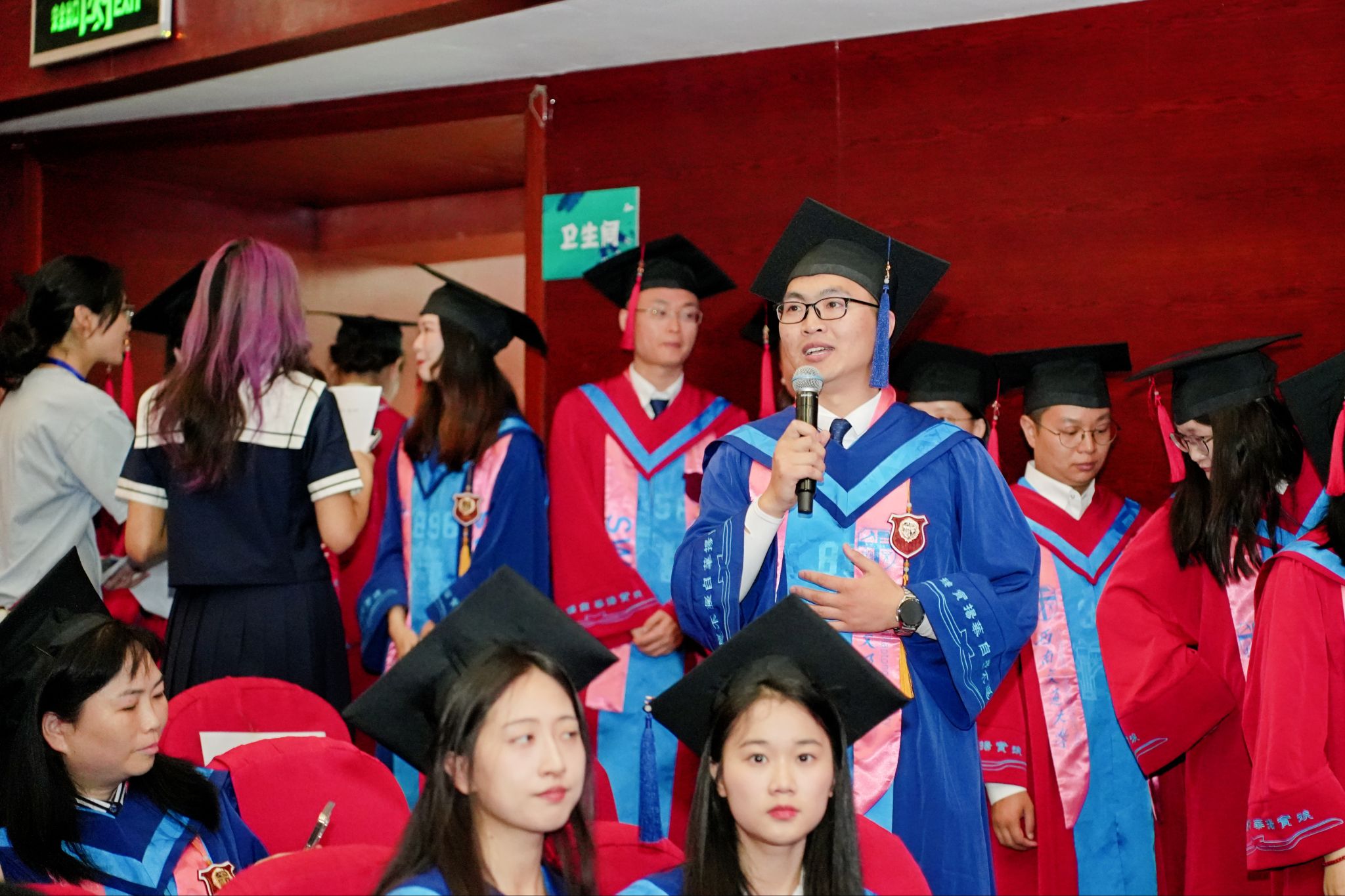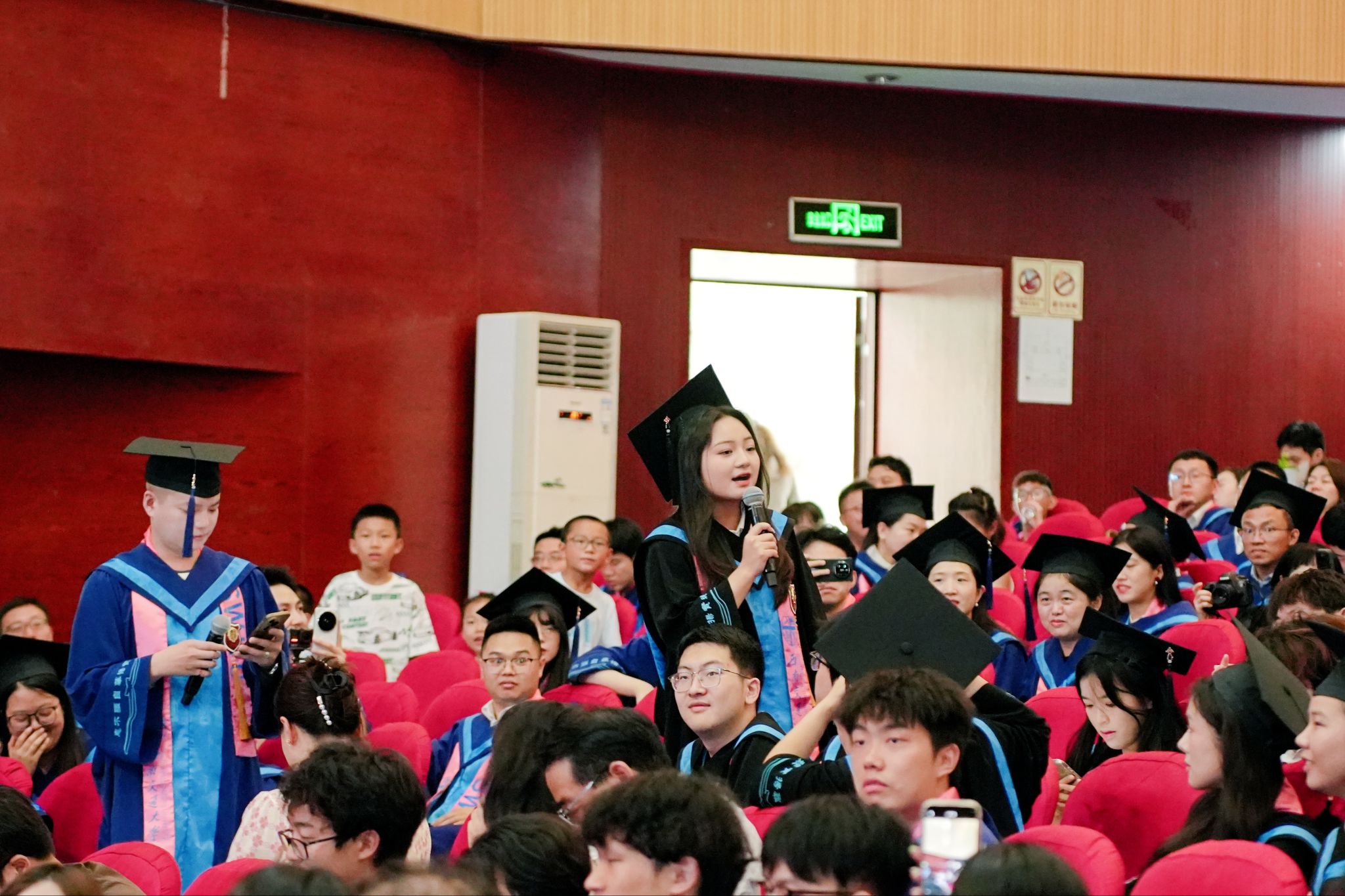 本科生毕业生代表毛宇欣、研究生毕业生代表李若晨、MBA毕业生代表张永恒分别发言。毛宇欣回顾了自己从懵懂到成熟的大学成长经历;李若晨分享了自己在硕士阶段学术研究、实践工作等方面获得的能力提升和成长;张永恒分享了自己奔走在课堂与职场之间的求学之路,不忘初心、拥抱挑战,在前行中连接彼此、照亮他人。毕业生代表真情实感的流露,饱含着对易游体育