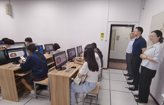党委书记蒋佳,院长韩科,副院长聂佳佳在本科教育中心副主任尹一的陪同下深入教学一线,开展教学检查工作。此次检查对新学期教学安排、师生上课情况、教学环境、教学设备运行等方面进行了全面检查。
