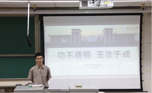 本科2019级于9月16日和24日在J4318教室举行“功不唐捐,玉汝于成”主题年级大会,年级大会由2019级辅导员苏扬主持。易游体育官方网站