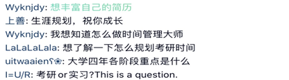 “仰瞻前路,成就未来”——大学生生涯规划训练营推广活动通过线上转发和评论的方式,为在校大学生提供了一个在线交流的平台。在这个平台上大家可以相互交流、各抒己见,可以认识大学生涯规划、提出自己对大学生涯规划的问题,也可以分享自己对大学生涯规划的看法,从而帮助学生群体尽早明确个人发展目标,在认识自我、了解自我、驾驭自我的前提下,探索自己的性格潜能,激发同学们进行大学生涯自我规划的积极性和主动性。