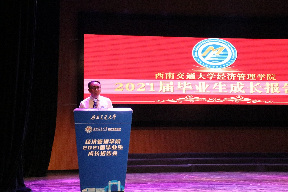 党政领导班子对圆满完成学业的同学表示衷心祝贺,对不辞辛苦、默默付出的老师和家长表示诚挚感谢。郭强指出,此次毕业生成长报告会不仅是对过去的总结,更是对未来的展望。在中国共产党成立一百周年之际,毕业生们不仅怀揣着自己的梦想,也承载着党和国家的期许,应当肩负起复兴祖国的重任。他向毕业生们提出三点希望:一是要坚定理想信念,勤奋耕耘,不断进取,追求卓越;二是要勤于学习,勇于实践,不断提高自身素质,努力成才;三是要肩负责任,勇于担当。他强调,毕业同学们要心怀“竢实扬华,自强不息”的交大精神,传承“格物致知,和合共进”的经管院训,在崭新的未来征途中,书写更为精彩的人生篇章。