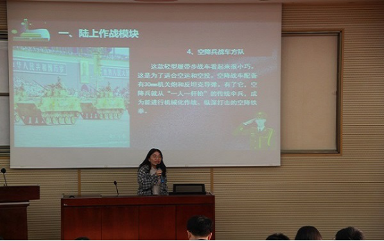首先是由硕士三班的同学带来的国庆70周年阅兵武器装备讲解,讲解的同学慷慨激昂,加上振奋的背景音效,仿佛将同学们带到了阅兵的现场。看到阅兵仪式上精良的装备及其超高的性能,在场的同学都为祖国军事力量的强大感到无比的骄傲和自豪。
