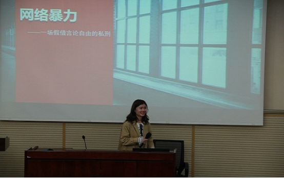 紧接着是硕士五班同学带来的关于“网络暴力”的分享,在信息和网络快速发展的今天,每个人都摆脱了自身真实角色的束缚,有的人忽略事实真相,在虚拟世界肆意对任何人、任何事做出至高无上的裁决,以网络正义之名行网络暴力之实,殊不知“恶语伤人六月寒”,恶毒的言语攻击给被暴力者带来无法磨灭的伤害,同学们也对此话题颇有感悟,都表示会在网络世界做到不出妄言,不助恶声。