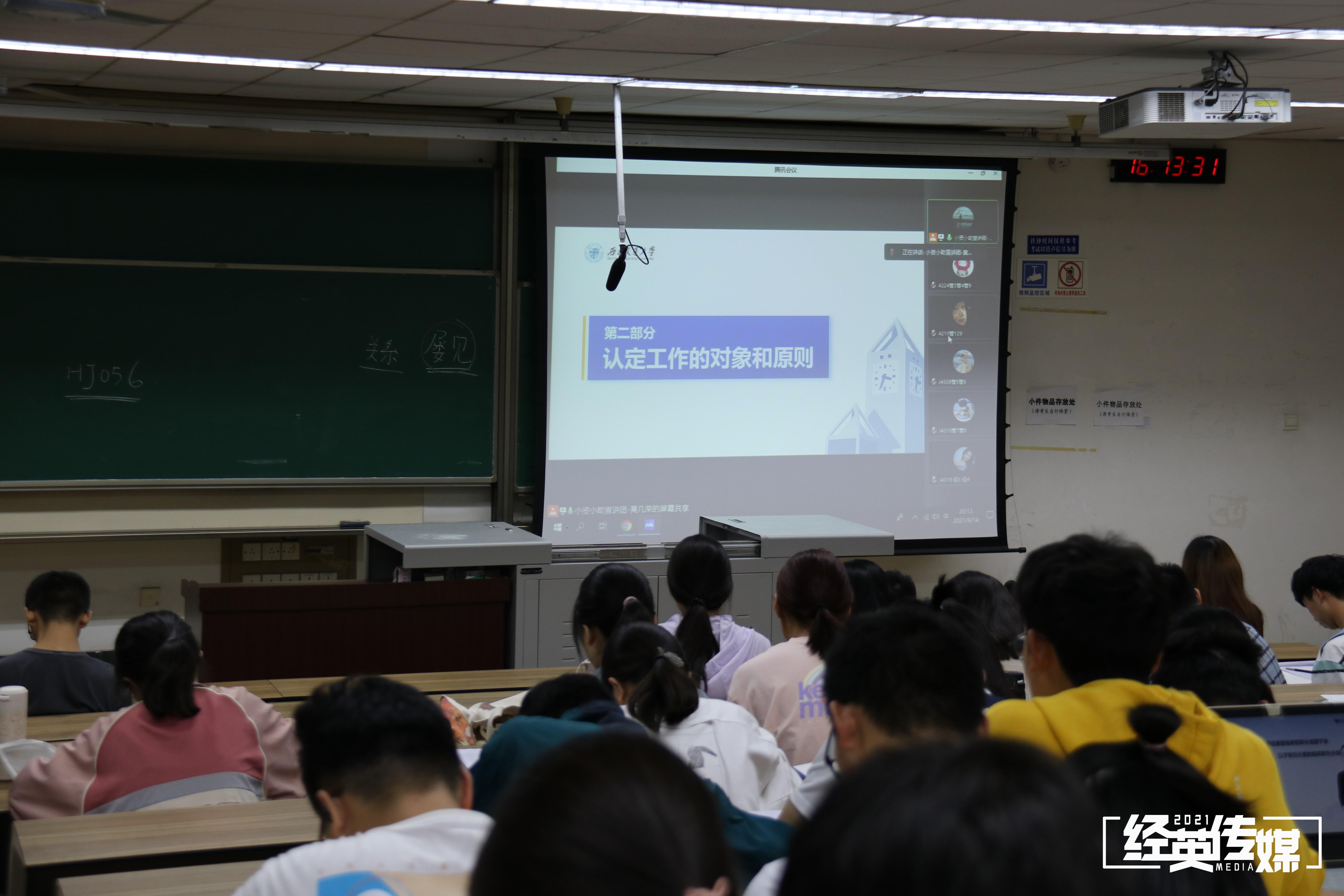 最后,黄几荣为新生们详细介绍了开展认定工作的做法,其中包括认定机构及职责、认定开展时间及准备材料、认定程序、认定管理和实地走访几个方面。