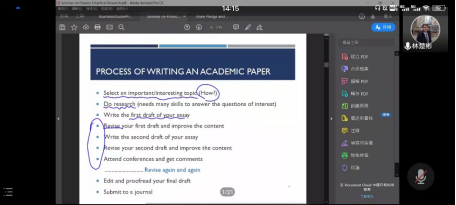 林楚彬老师担任主讲人。林楚彬老师以其风趣幽默的风格和一丝不苟的治学态度广受同学们的喜爱。讲座开始后,林老师首先提出诚信科研,要求同学们遵守学术准则和规范,树立学术道德观。研究生学习阶段是从事科学研究的开始,因此更应该养成好的习惯。随后,林老师就如何发表一篇论文对研究生新生们进行了细致的讲解。从选定主题开始,到具体研究,再到写出初稿,如何一遍遍修改,最后投到期刊。学生们对这件研究生阶段必经之事尤其关心,也因此听得极为认真。在此过程中,林老师毫不吝啬地分享自己的投稿经验,同学们直呼干货满满。作为刚踏进研究生阶段的新生们,未来能否在学术研究方面大放异彩仍未可知,但经过这节通向学术大门的第一课,易游体育官方网站