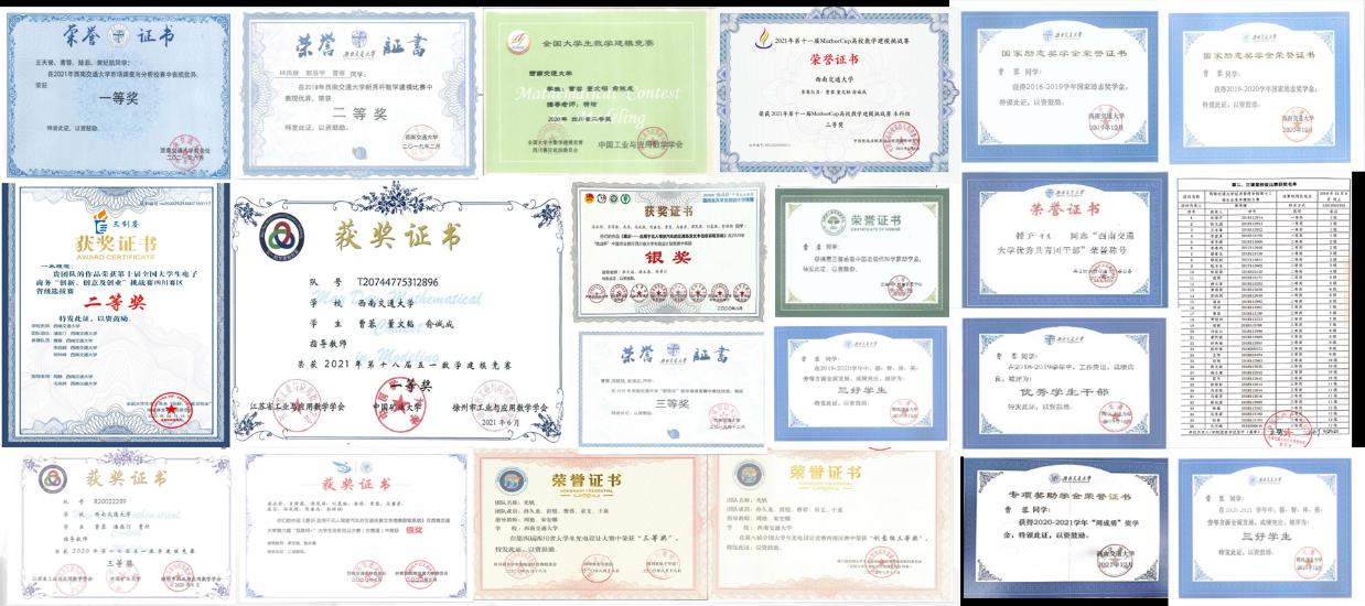 除了成绩方面,曹蓉在各项竞赛上也斩获了不少奖项,曾获得过五一建模一等奖、Mathorcup建模三等奖、全国大学生数学建模省级二等奖、“三创赛”省级二等奖、挑战杯省级二等奖等为代表的10余项奖项。拼搏进取、开拓创新是她对待这些竞赛的态度。曹蓉坦言,这些竞赛带给她的不止是一张奖状,还有在比赛过程中培养出来的意志、能力,这也是更为珍贵的。