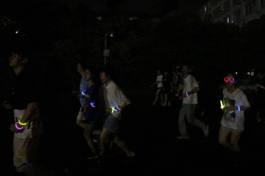毕业生荧光夜跑活动在九里校区顺利举行。开场前,同学们首先领取了跑步时随身携带的荧光套件并合影留念。伴随着激昂的音乐,同学们正式开始了欢乐的夜跑活动。大家从南门出发,途经镜湖、求实路口、田径场、篮球场、网球场、茅以升图书馆、零号教学楼。夜跑活动使毕业生们拥有了一个尽情释放自己的机会,相信他们在今后将会心怀希望,努力拥抱属于自己的未来。