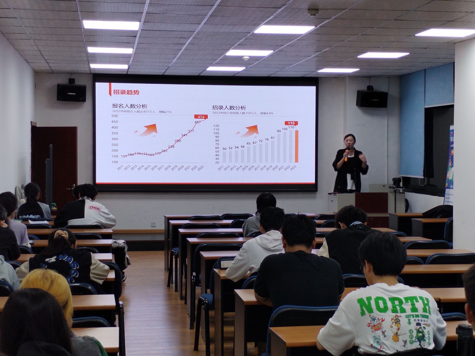 邀请了中公教育的梁萧老师开展考研择校择专业讲座。梁萧老师分析了如何选择适合的备考院校和专业,帮助同学们解决了心中对考研择校择专业的困惑。