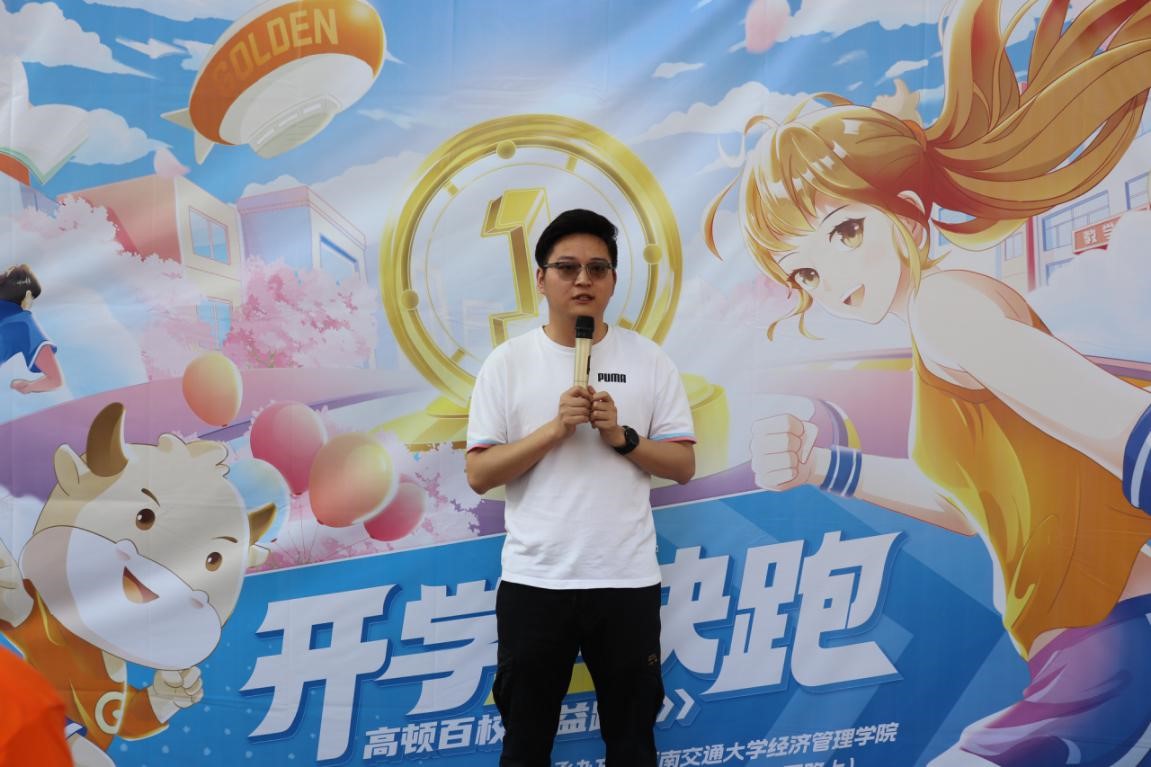 活动伊始,由高顿教育成都分校校长覃庆节致辞。他指出高顿校园公益跑旨在连接更多大学生,将大家的实际行动化为涓涓细流注入公益事业,为西部困难儿童捐赠爱心书籍,助力他们点亮梦想,覃校长也感谢了西南交通大学经管易游体育