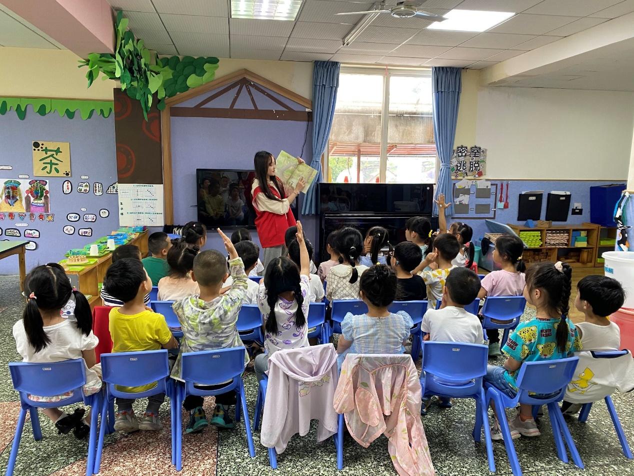 在教室的阅读角,小班的孩子们阅读了《我爱你,比永远还要多一天》。孩子们在志愿者绘声绘色的表述下不知不觉间沉浸到故事中,主动分享自己在阅读中的体会和收获,理解了爱需要勇敢真诚地表达出来。
