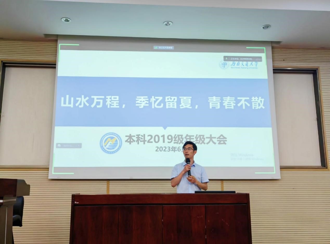 其次,杨老师还对学生们进行了毕业期安全稳定教育,强调学生应注意自己的人身安全、财产安全、食宿安全、交通安全、求职安全,鼓励学生为同学多做一些有意义的事情,在最后的大学校园时光中留下美好的记忆,以后多回母校看看。杨宏毅老师寄语毕业生:“毕业不是终点,而是新的起点。牢记‘竢实扬华,自强不息’,以身为一名交大人而自豪!”