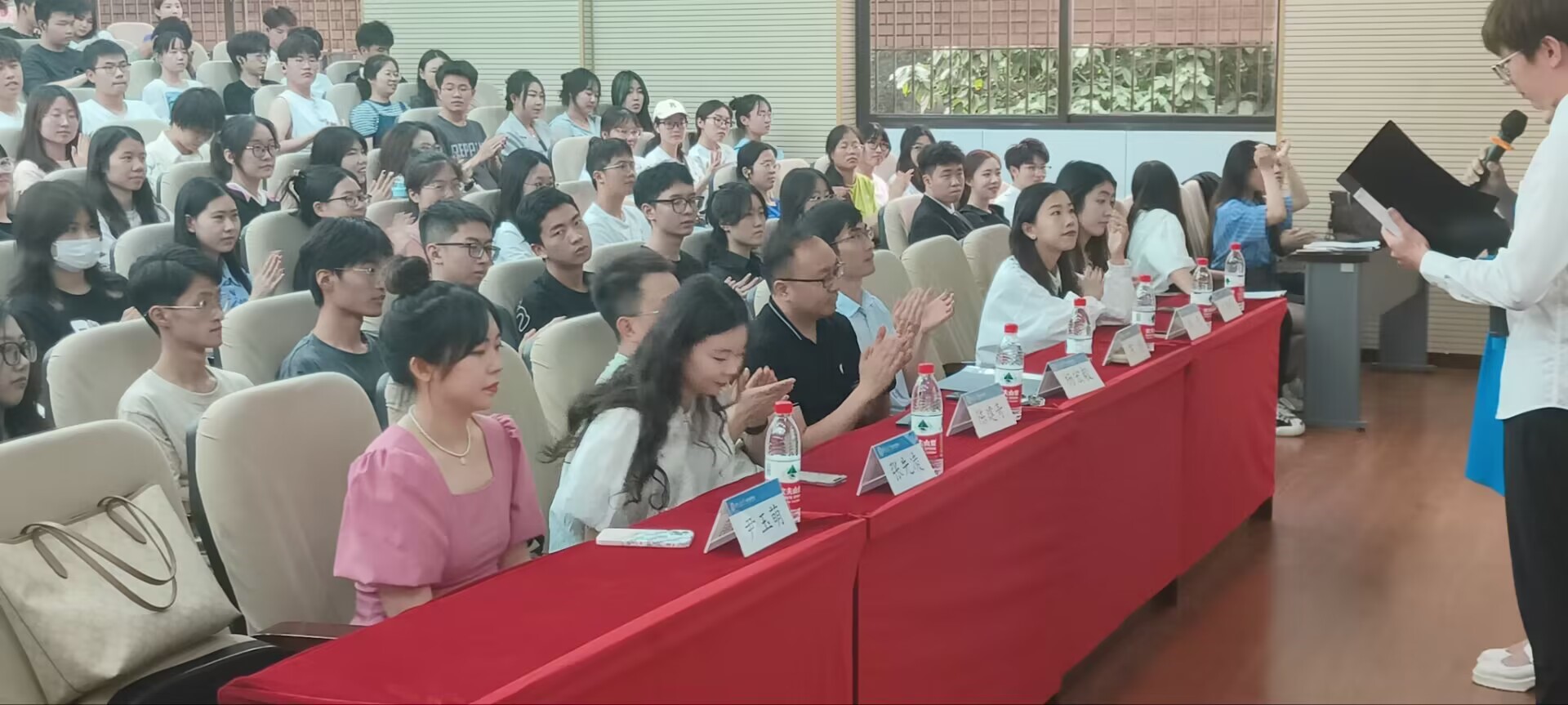主持人引用习近平总书记的殷切嘱托开场,激励各团学组织成员时刻铭记总书记教诲,积极投身于各项学生工作,自信自强、守正创新,踔厉奋发、勇毅前行。