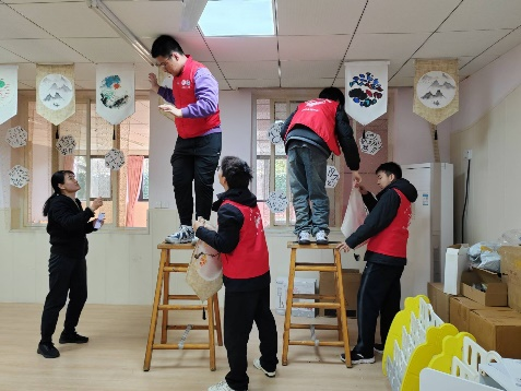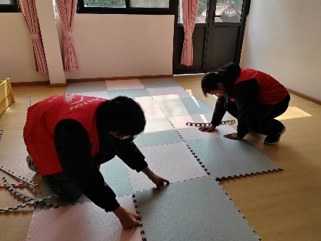 的志愿者们来到了西南交大幼儿园,协助幼儿园的教师们完成日常工作,丰富孩子们的生活,陪伴他们在温馨和谐的氛围下健康成长。本次幼儿园服务之旅志愿者们跟随老师的指导将塑胶垫铺设踏实在地面,为孩子们开辟出放心玩耍的场地;同时,将小小的“厨房设施”摆在需要的位置,组装装置、固定好迷你帐篷,将教室改造成了一处温暖且充满天真气息的地方。