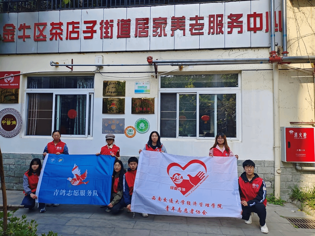 的志愿者们携带着热情与活力前往了金牛区茶店子街道居家养老服务中心,去看望和帮助那里的老人们,并进行了一场跨时代的交流。