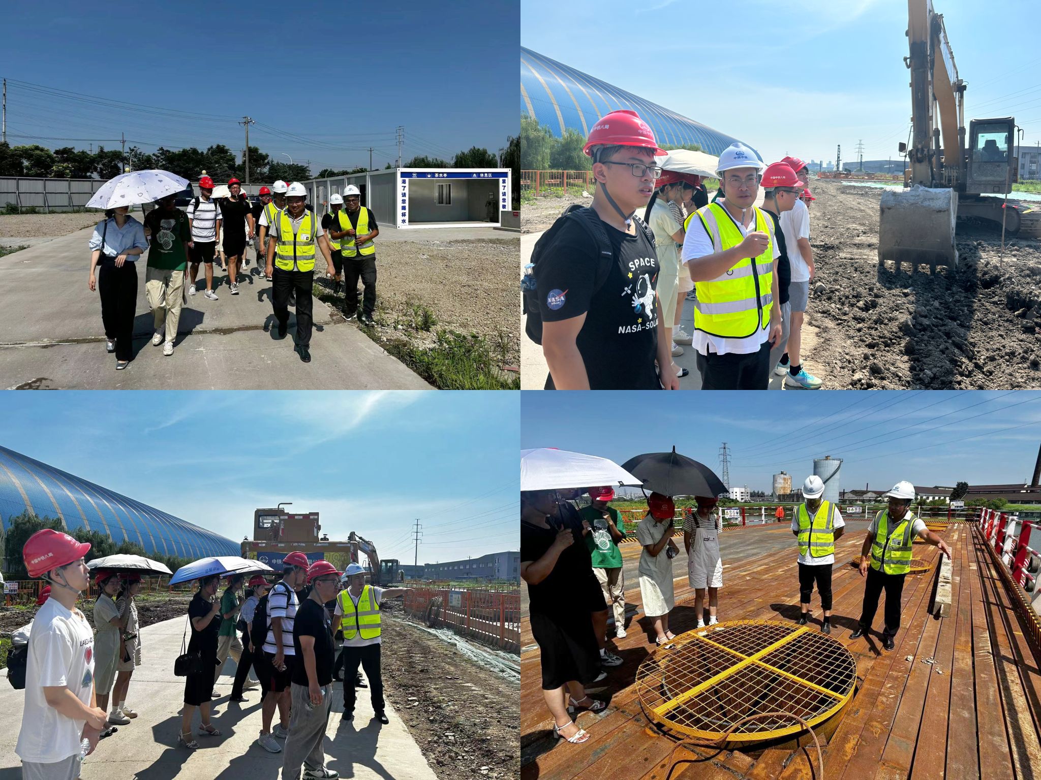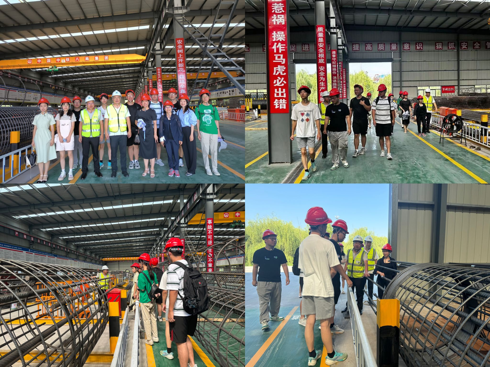 师生前往中铁八局政和大道西延(凤翔路-惠洲大道)新建工程项目部参观钢筋加工厂和施工现场。项目书记张晓东和副经理罗贤辉向师生介绍了钢筋铸造、地基打造过程。生产和建造现场井然有序,工人们在烈日炎炎下挥洒汗水,师生近距离观察了现代化施工设备的高效运作。这一场景让学生们深刻感受到了国家基础设施建设的雄伟与艰辛,激发了他们投身国家建设、服务社会的责任感和使命感。