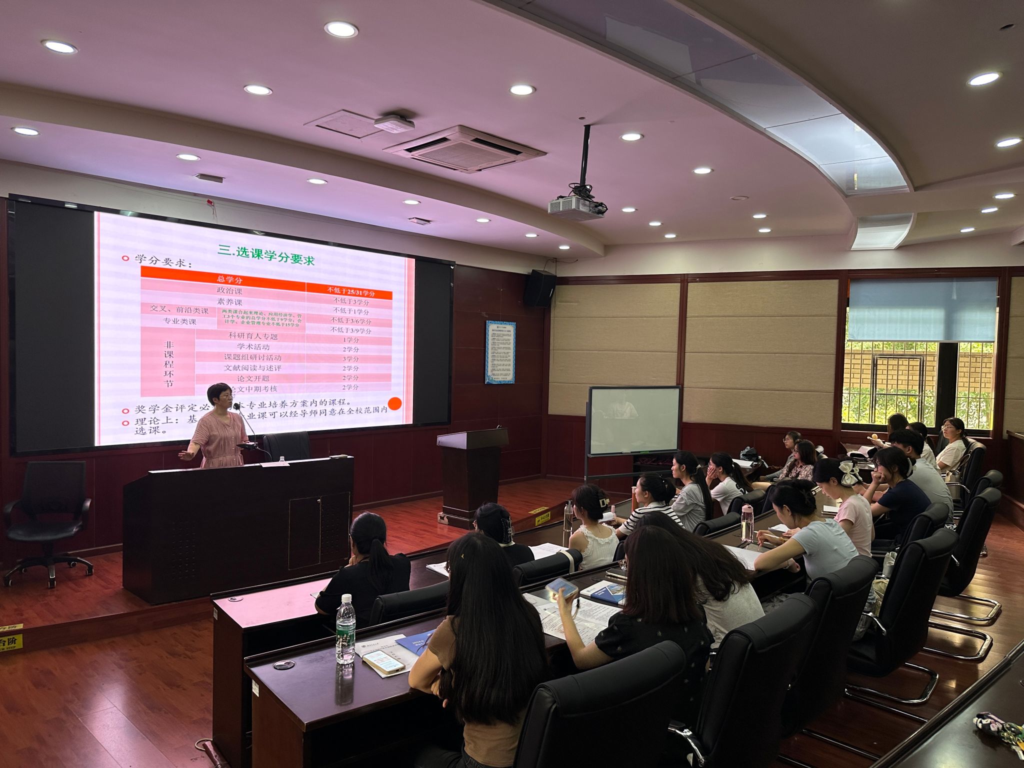 主管博士研究生工作的马锋副院长参加;研究生教育中心副主任谢静老师负责全日制学术型硕士研究生新生入学前培养导视会议;全日制专业型硕士研究生新生开学前培养导视会议由专业学位教育中心王青芬老师负责。全体研究生新生参加。2024级研究生辅导员王哿参加。老师们深入解读了专业培养方案,并详细说明了选课要点。