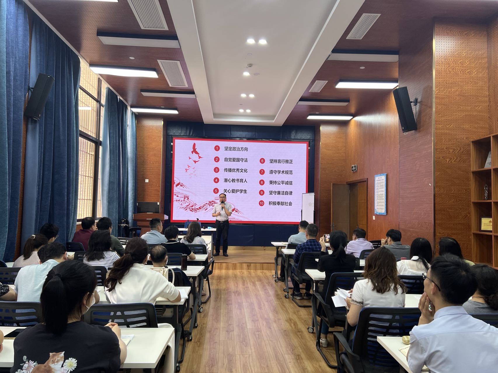 党委副书记杨宏毅带领大家逐条学习了《新时代高校教师职业行为十项准则》的内涵,并对应讲述了相关的警示案例。杨宏毅谈到,易游体育