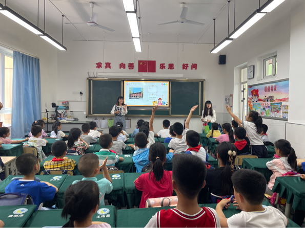 随后,龙柳江同志讲述了党史故事。内容从“中共一大”开始到即将召开的二十大,着重对“中共一大”、“十一届三中全会”、“十九大”和“二十大”展开了讲述,通过动画的形式生动有趣的向“红领巾”们介绍了党代会的历史知识。中共一大的召开宣告了中国共产党的正式成立,犹如一轮红日在东方冉冉升起,照亮了中国革命的前程。十一届三中全会是新中国成立以来在党的历史上具有深远意义的伟大转折,提出了改革开放的政策,从此中国开始飞速发展。当观看到2010年中国GDP排名攀升至全球第二,超过日本时,小学生们的民族自豪感瞬间被点燃,全场爆发出热烈的掌声。从十九大到二十大,是“两个一百年”奋斗目标的历史交汇期,意义重大而深远。