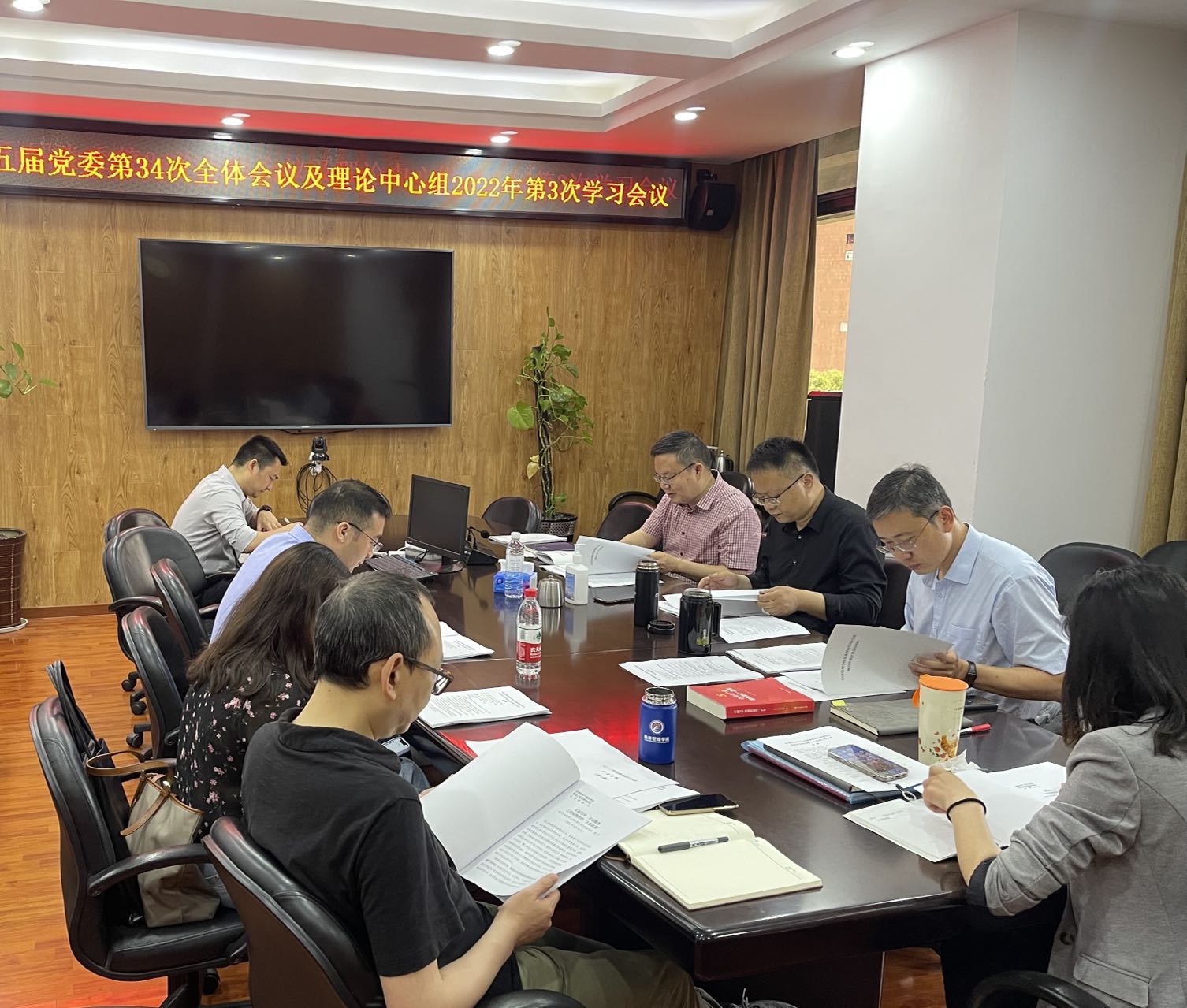 第五届党委2022年第3次理论学习中心组学习、第34次全体会议在九里校区零号楼0607会议室召开。会议由党委书记王斌主持。