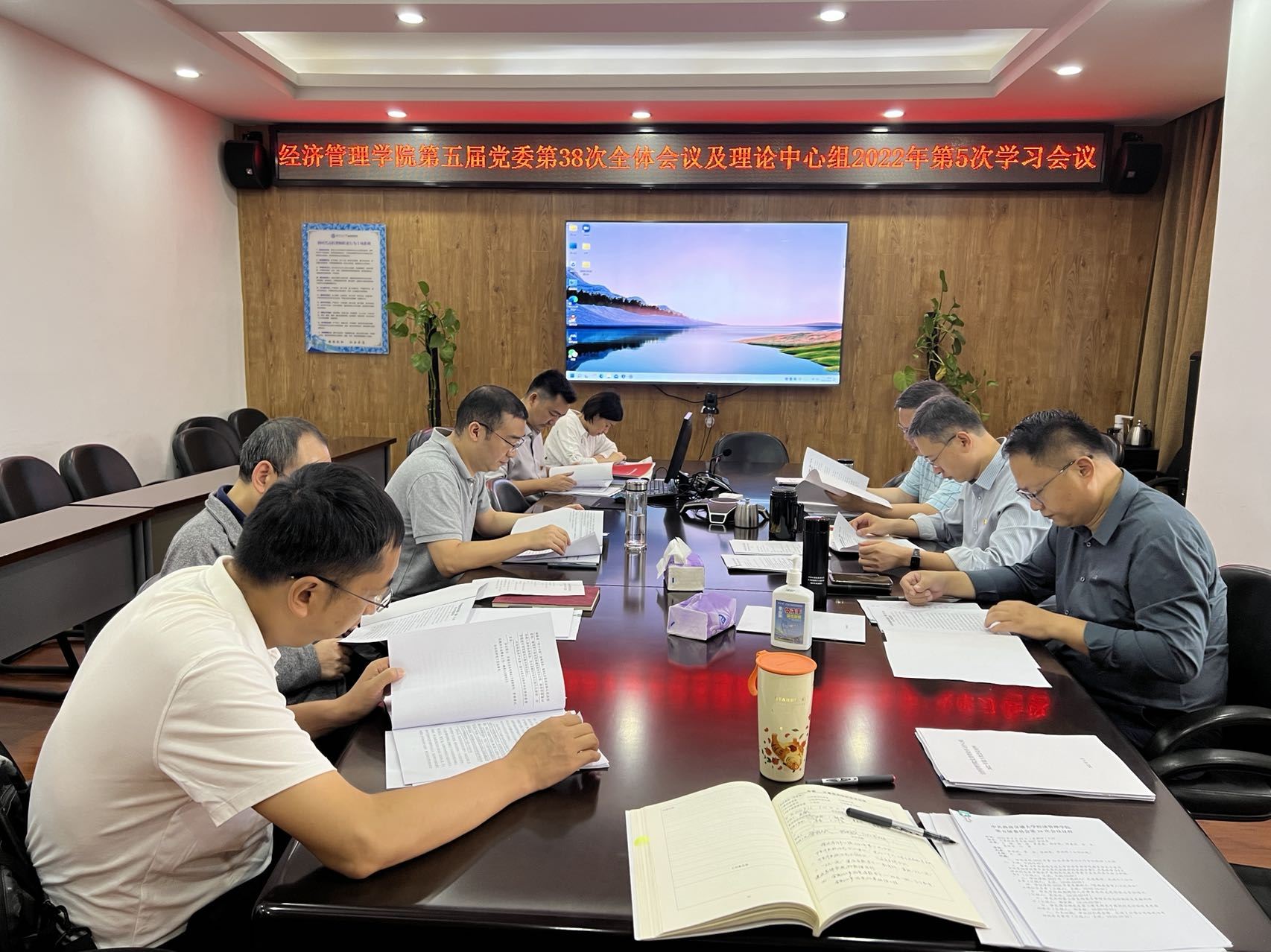 第五届党委2022年第5次理论学习中心组学习、第38次全体会议在九里校区零号楼0607会议室召开。会议由党委书记王斌主持。