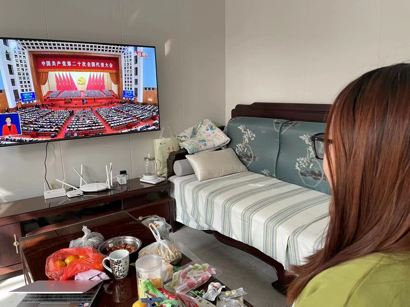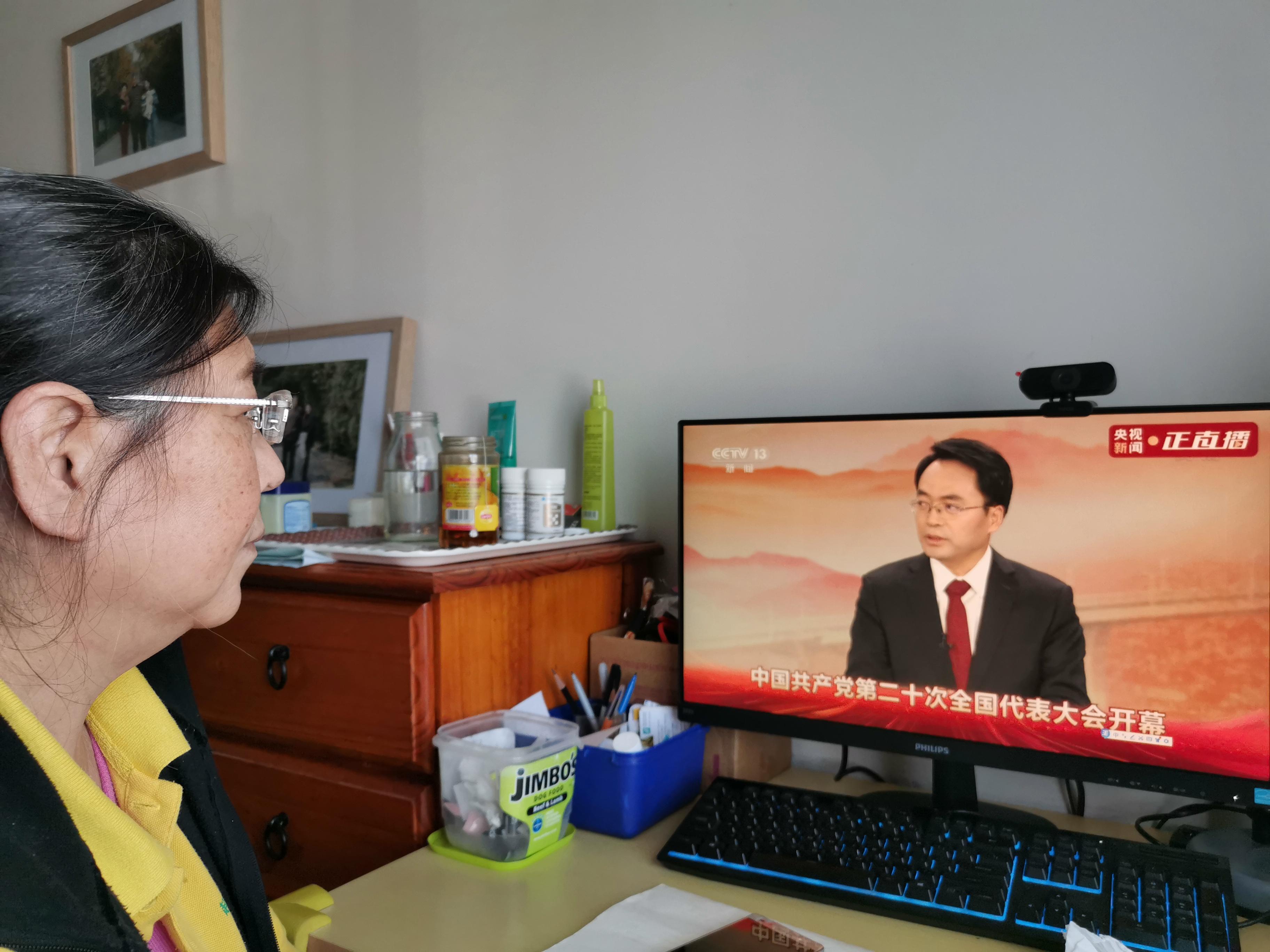 退休教职工在家观看大会