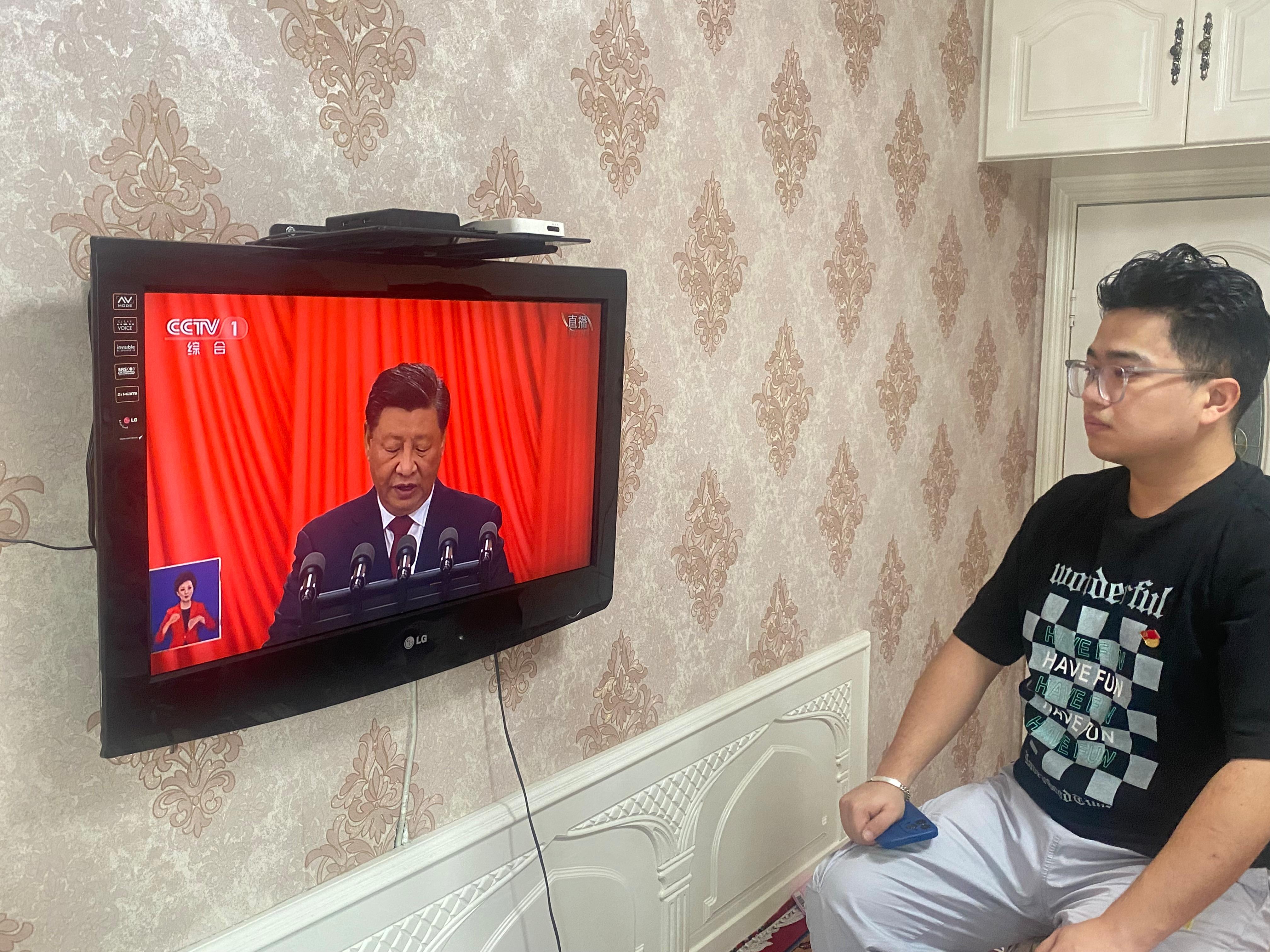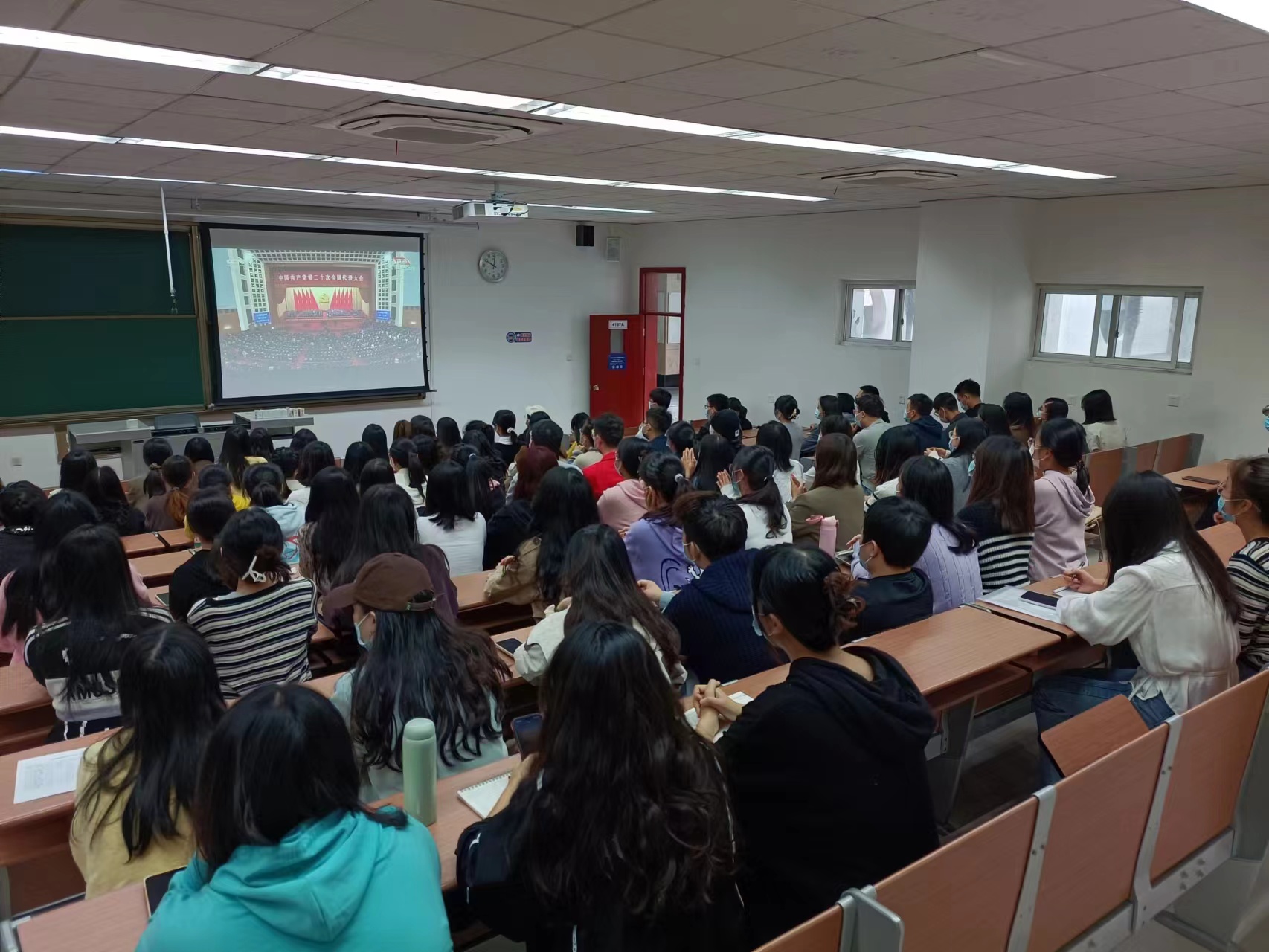 学生集体收看党的二十大直播