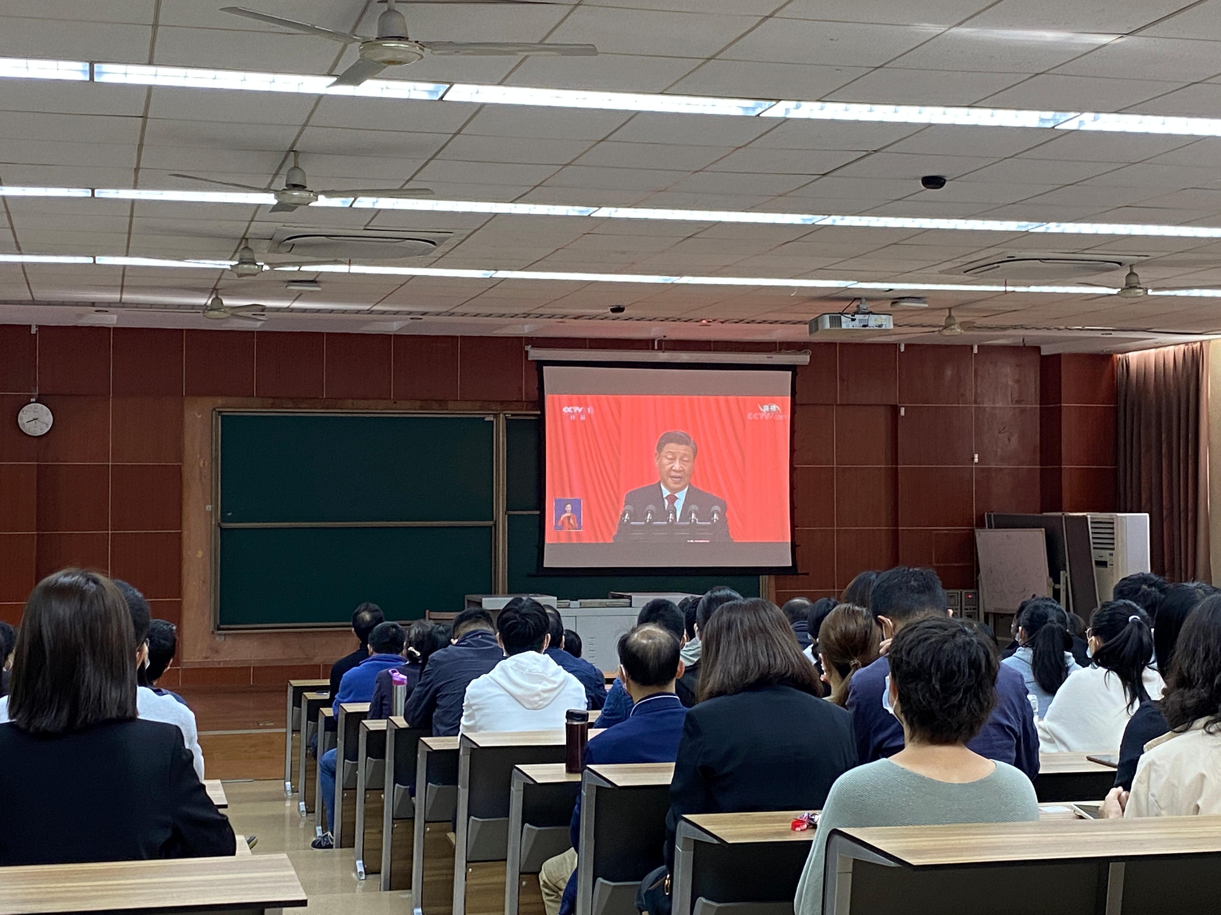 教师集体收看党的二十大直播