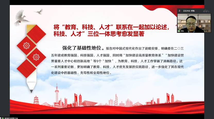 此外,郭强结合学校第十五次党代会精神着重讲授了党的二十大报告中的中国式高等教育现代化这一命题的重大意义、核心内涵和未来方向,并强调“教育、科技、人才”三位一体思考愈发显著,而高校正是科技、教育、人才最集中的交汇点。近年来,我校实施人才强校主战略,高层次人才呈快速增长态势,人才学科生态布局持续向好,人才团队示范引领作用发挥明显,人才队伍支撑“双一流”建设的“顶梁柱”作用显著增强,并在科技创新上坚持“四个面向”,主动服务国家重大需求,实现新的突破。今后,我们易游体育
