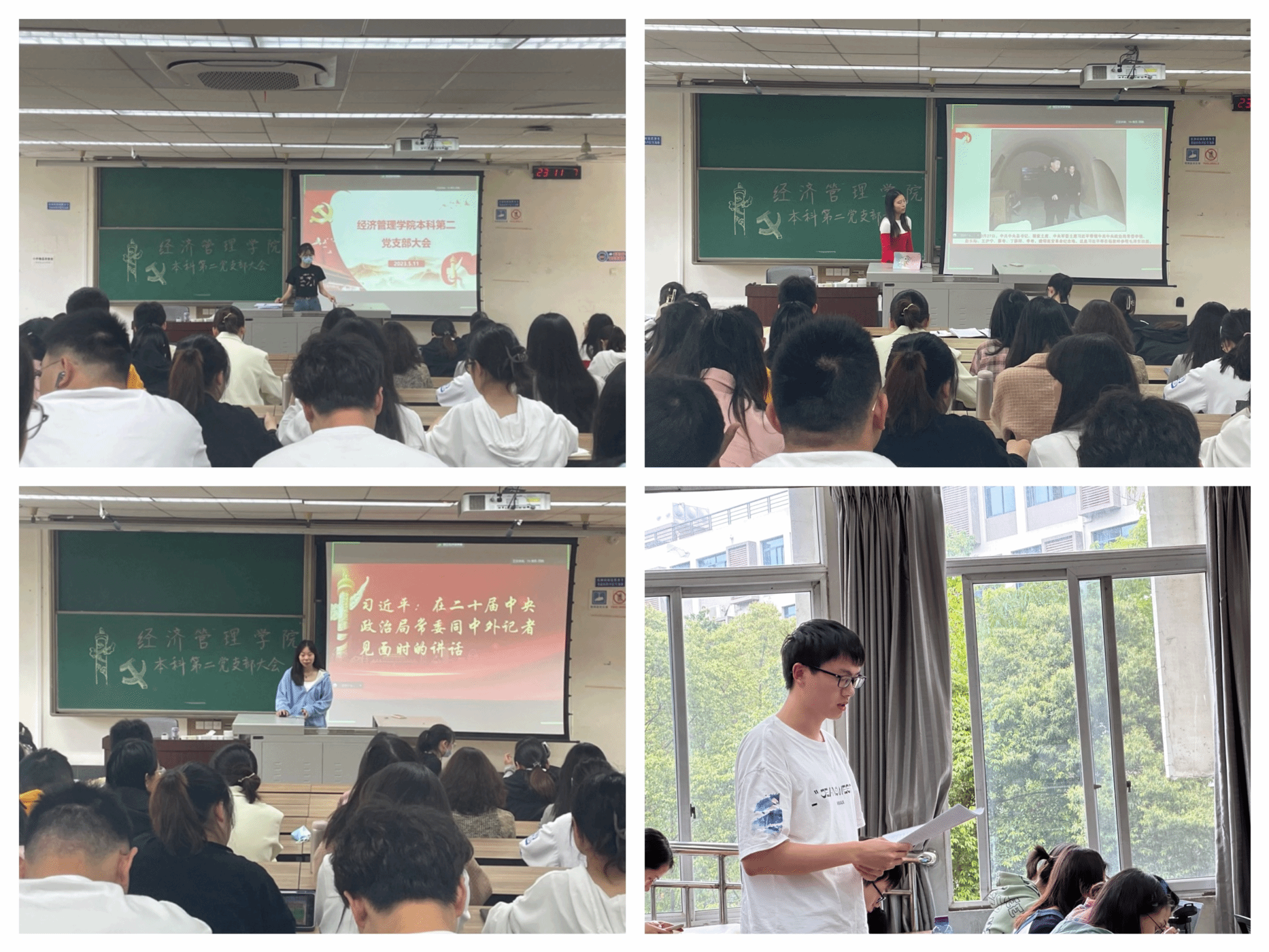 本科第二党支部开展学习贯彻习近平新时代中国特色社会主义思想主题教育——“习近平总书记与大学生在一起”暨毕业生党员主题教育党日活动。首先,毕业生党员领学分享习近平总书记给大学生的重要回信和习近平总书记到各大学视察时的重要讲话精神;然后,大家集体观看党支部成员为毕业生党员录制的视频;紧接着,党支部全体成员为2019级毕业生献歌;随后,毕业生党员重温入党誓词;最后党支部为毕业生党员颁发入党生日贺卡。通过主题党日活动积极教育引导党员深刻领悟“两个确立”的决定性意义,不断增强“四个意识”、坚定“四个自信”、做到“两个维护”,树立远大理想,担当时代责任。