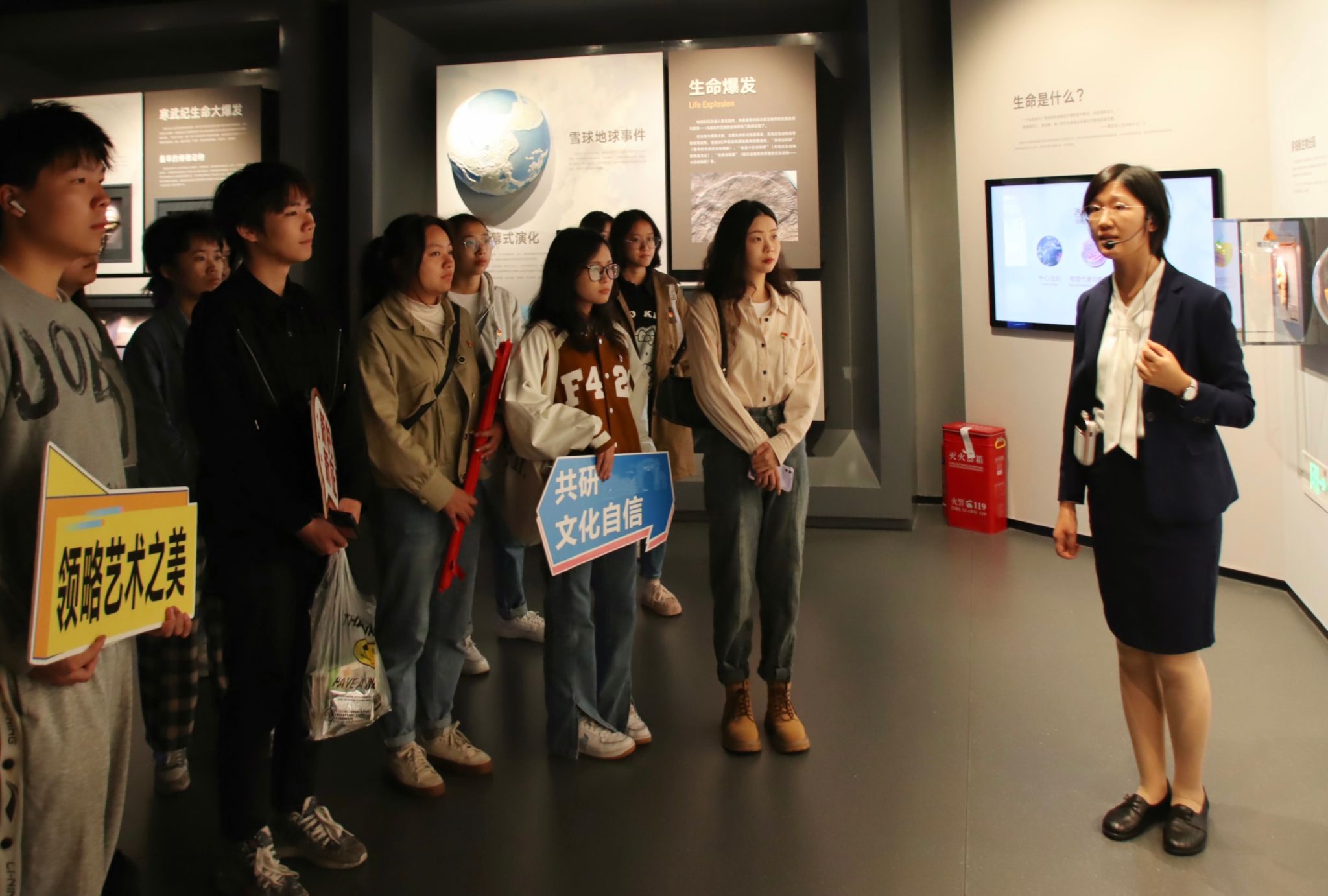 四川大学博物馆至今已有近110年的历史,是中国历史最为悠久的博物馆之一。在讲解员的带领下,支部成员先是来到了自然专题展厅。博物馆中神态惟妙惟肖、栩栩如生的动植物标本吸引着大家的目光,动物的演变、植物的种类特征展现了良好的自然生态系统。同志们在深入浅出的讲解中切实感受“中国式现代化是人与自然和谐共生的现代化”。