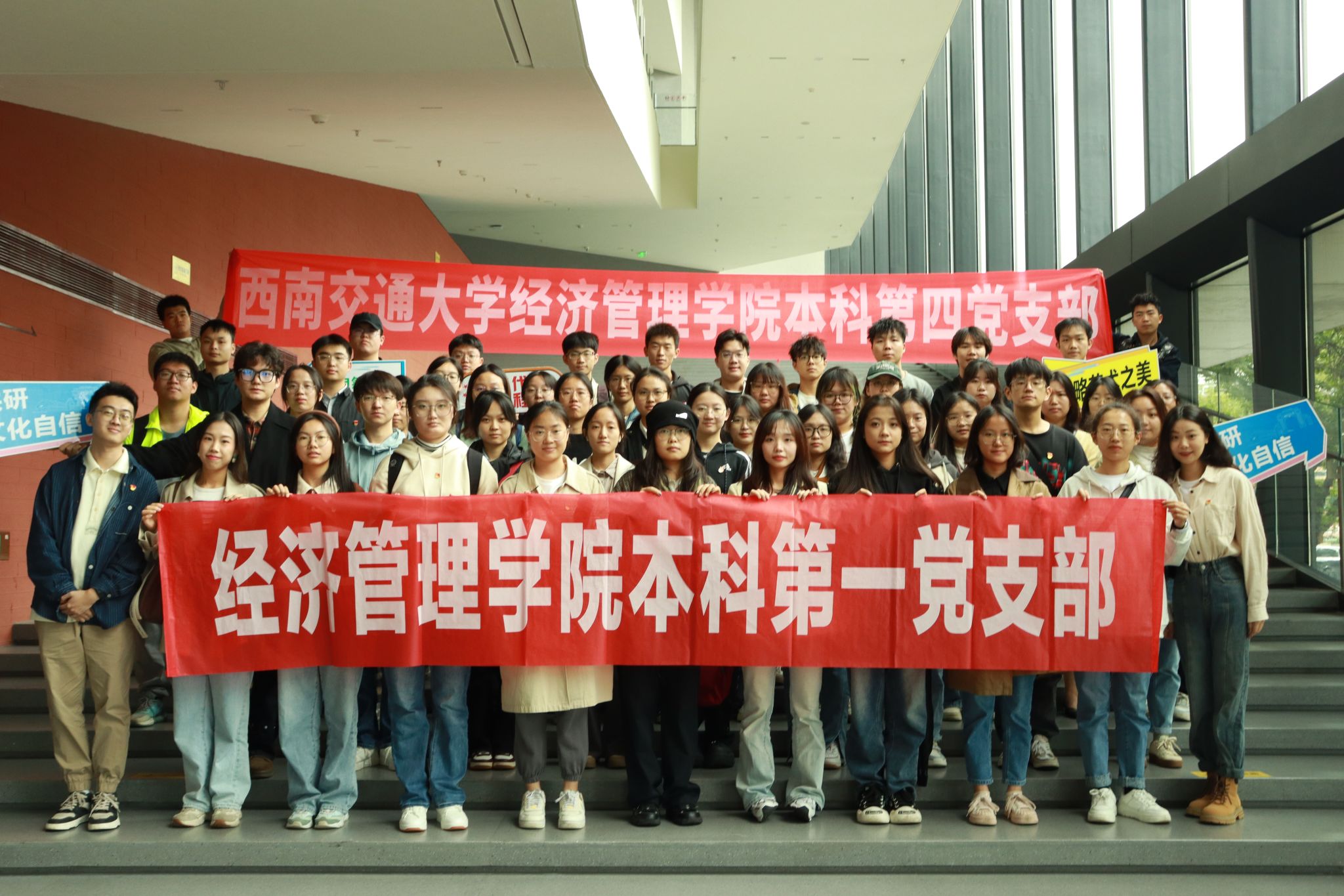 本科第一党支部与本科第四党支部共同组织开展了主题为“担负文化使命,坚定文化自信”的参观研学活动。本次活动由张先凌、薄慧、王子琦主持,带领支部成员前往四川大学博物馆实践研学。本次活动主要由参观展馆与交流心得两部分组成。