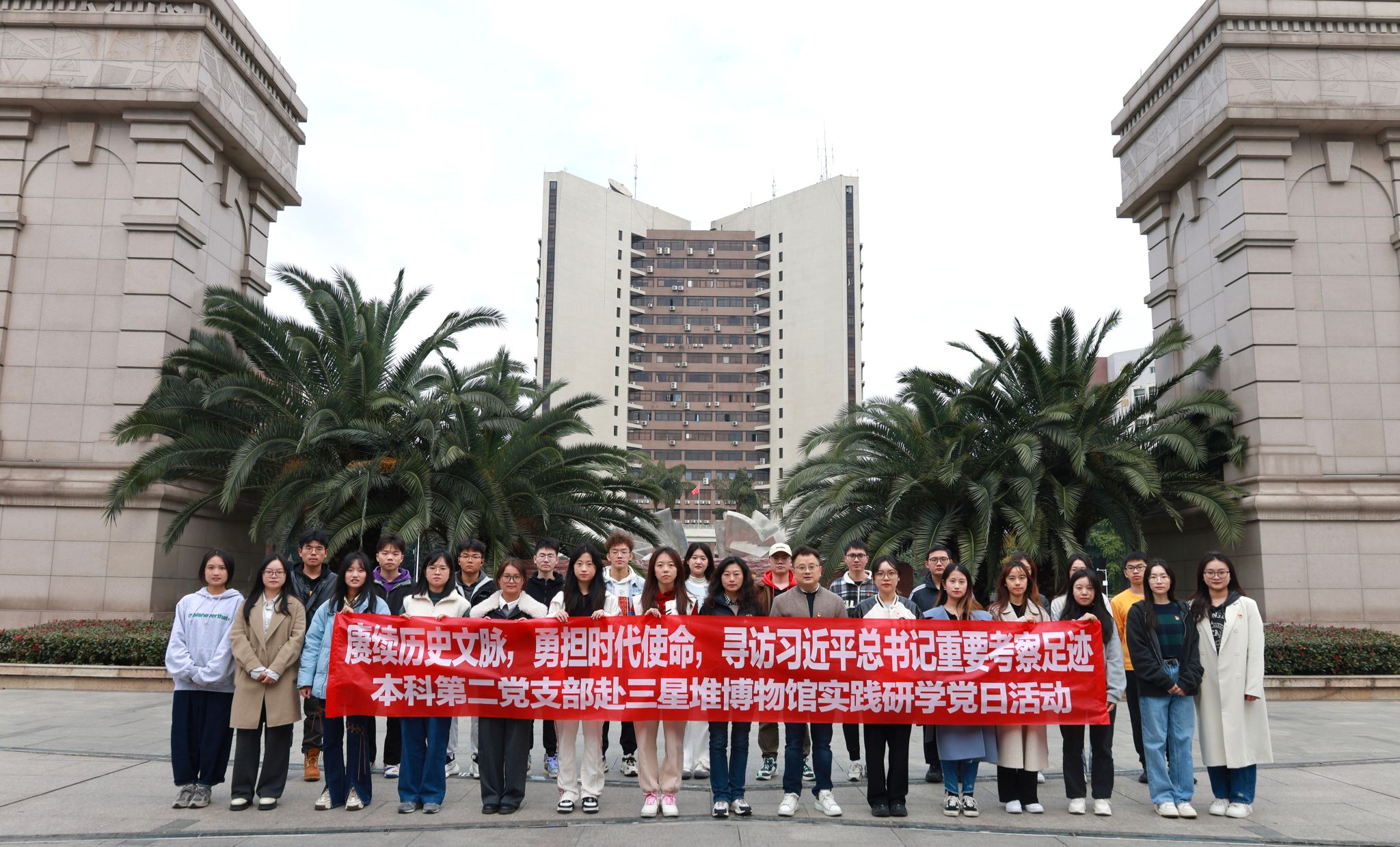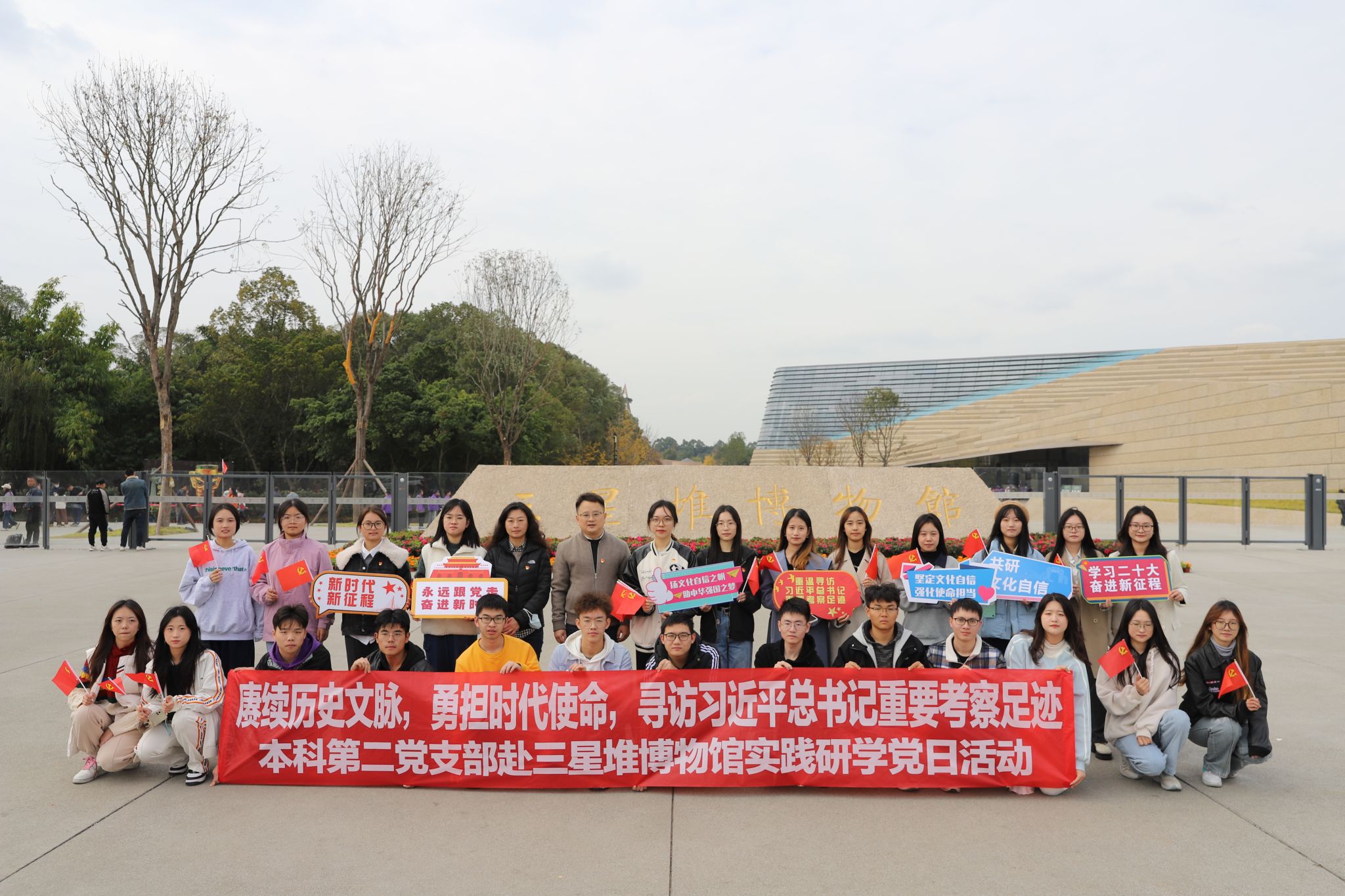 党务秘书李洪辉、本科第二党支部书记陈建奇的带领下,前往广汉市三星堆博物馆,开展“赓续历史文脉,勇担时代使命,寻访习近平总书记重要考察足迹——三星堆博物馆实践研学”主题党日活动。