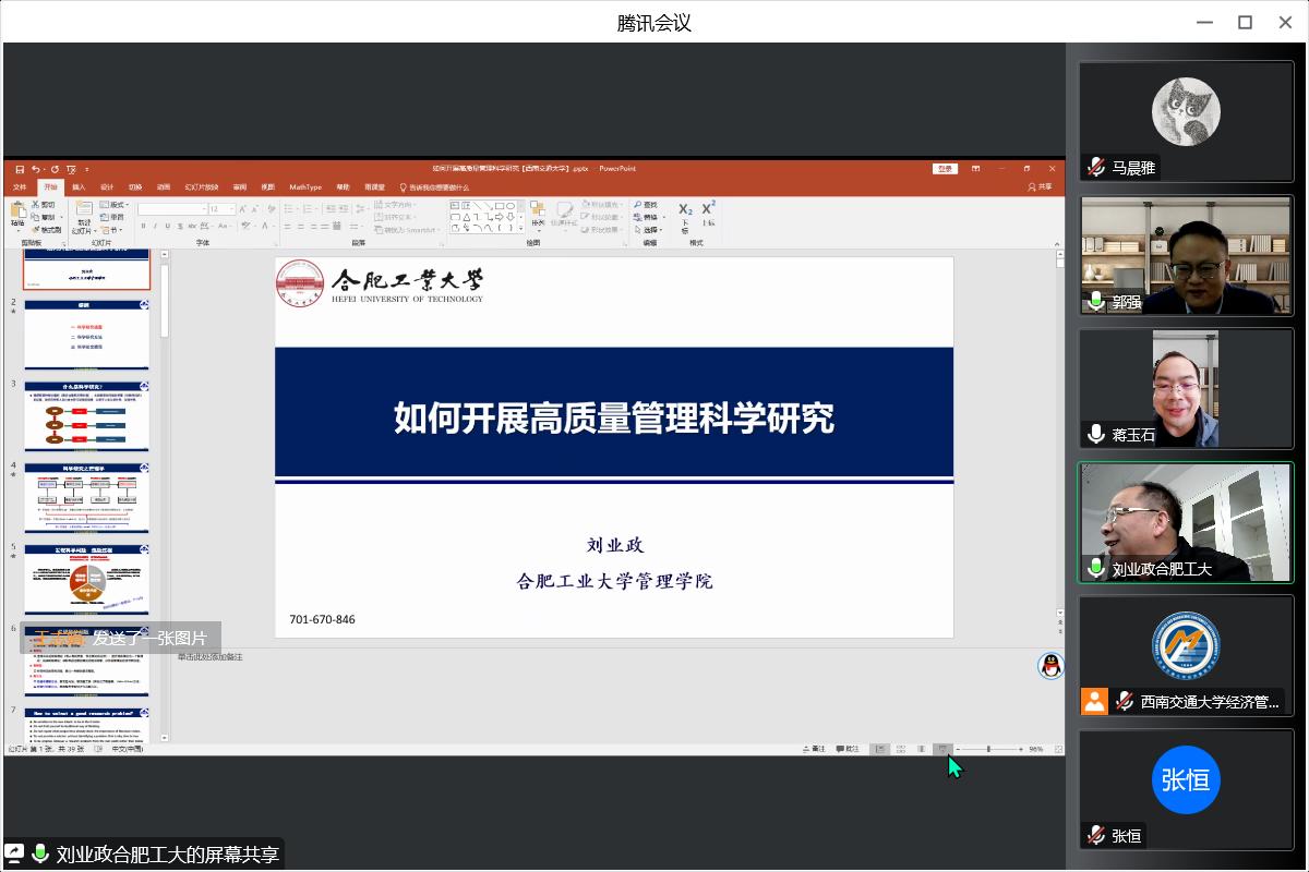 师生带来题为“如何开展高质量管理科学研究”的线上专题讲座。本次学术活动由市场学系蒋玉石教授主持,校内外师生60余人参加了本次讲座。