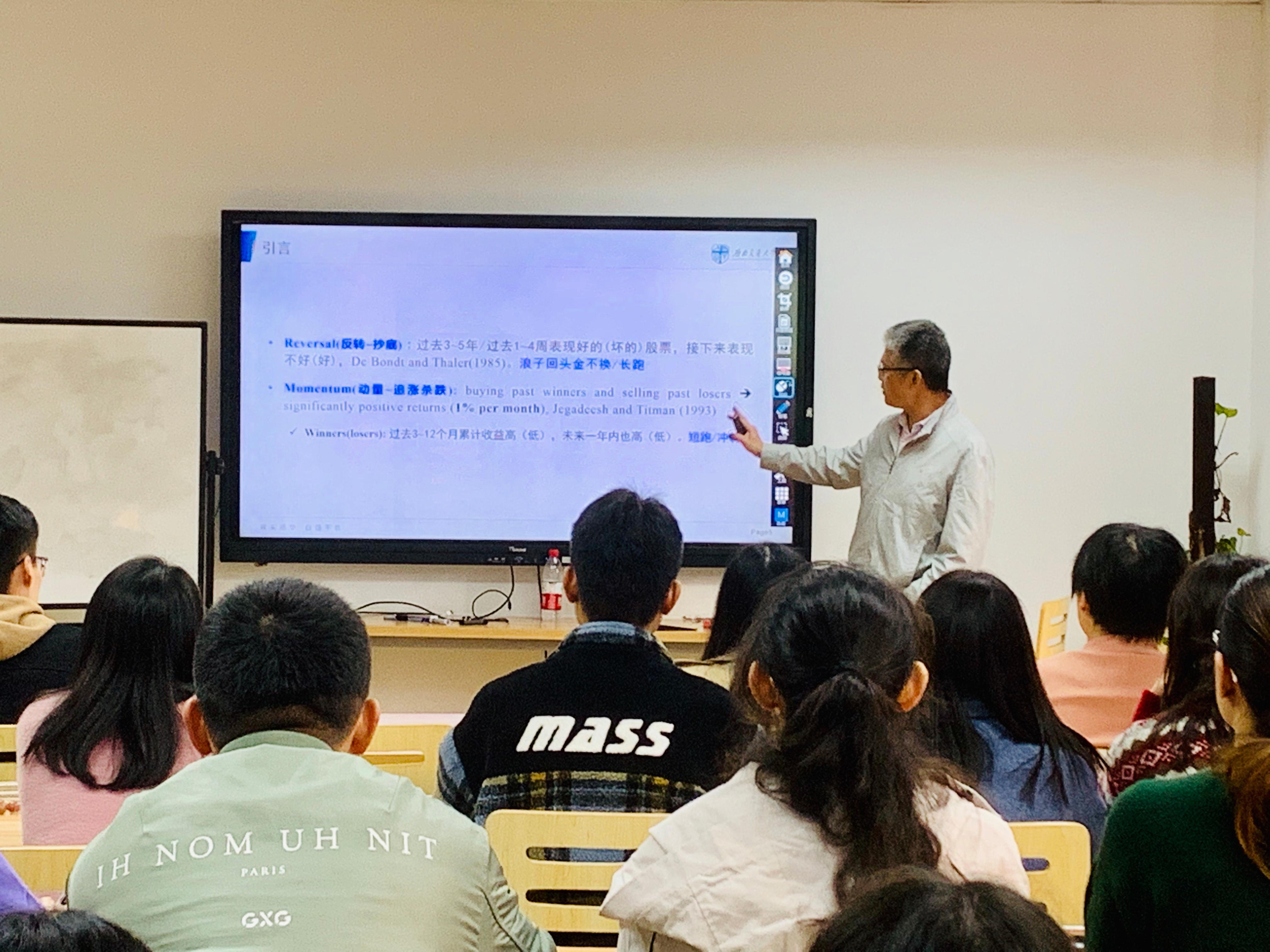 2021年10月28日下午13:00在九里校区0411教室,金融与财务学系中国特色金融研究创新团队朱宏泉教授以“分析师共同覆盖视角下的动量溢出效应研究”为题为经管易游体育