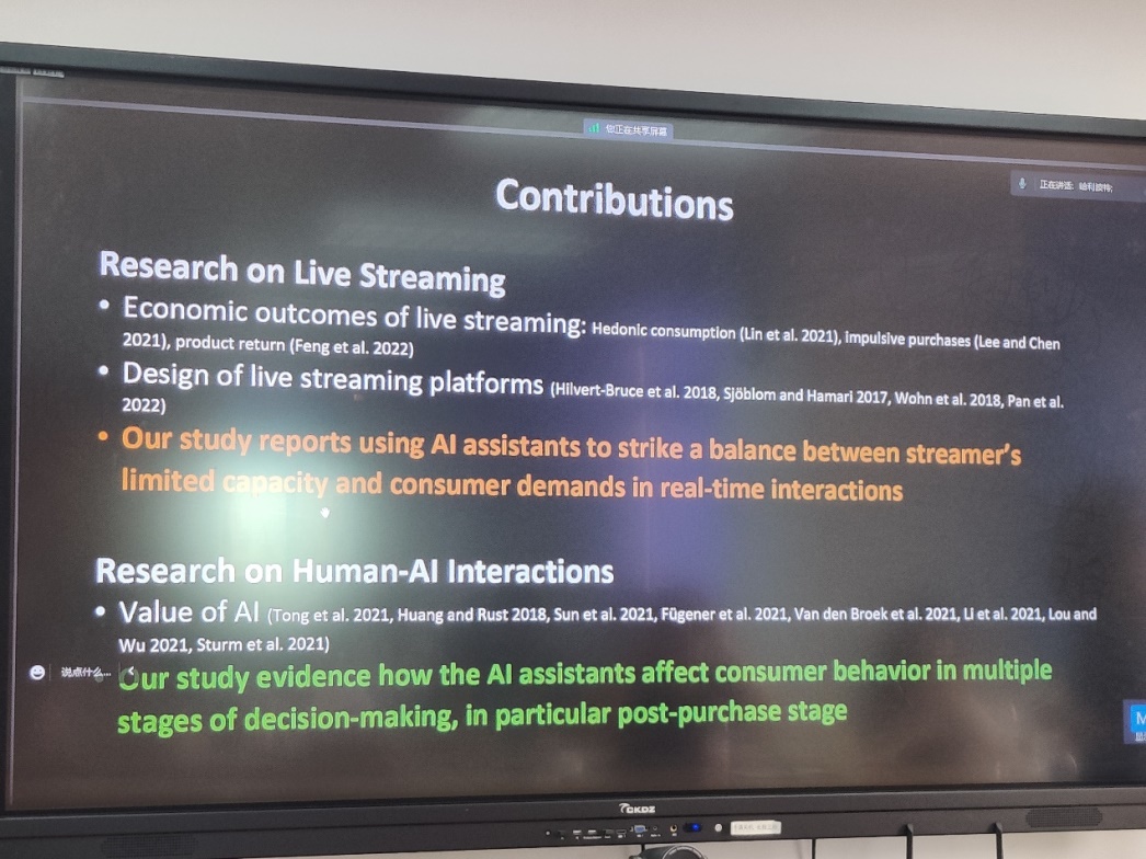 0411室开展题为“The Role of AI Assistants in Livestream Selling: Evidence from a Randomized Field Experiment”的学术讲座。讲座由易游体育