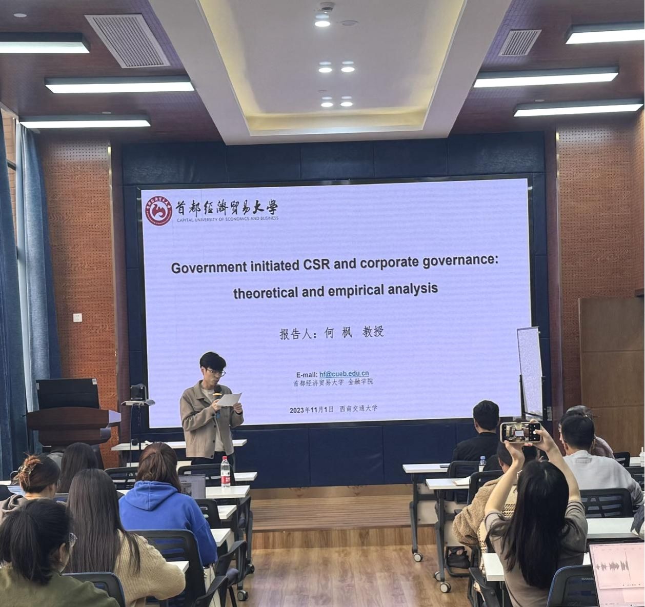 师生作了一场题为“Government initiated CSR and corporate governance: theoretical and empirical analysis”的讲座。此次学术活动由易游体育