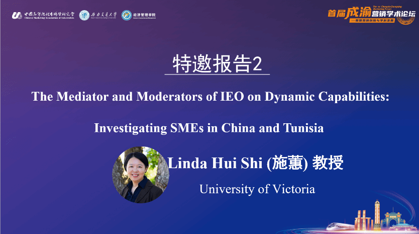 的Linda Hui Shi(施蕙)教授作了主题为“The Mediator and Moderators of IEO on Dynamic Capabilities: Investigating SMEs in China and Tunisia”的报告。她与合作者们研究了企业动态能力在国际创业导向与绩效关系中的中介作用,分析了制度距离与文化距离的调节作用,为发展中国家创业企业如何通过国际化与数字化手段来克服文化与制度的障碍提供了新的解释。