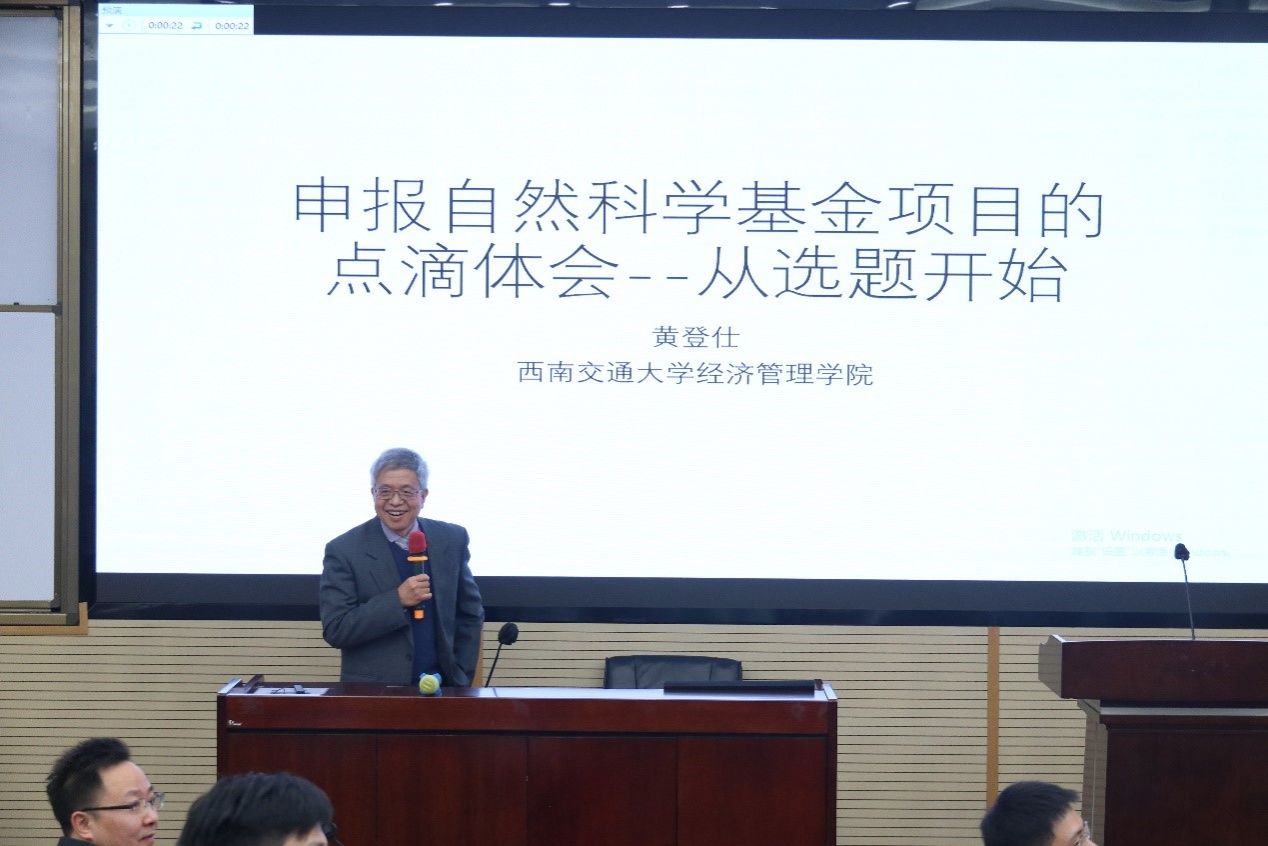 副院长聂佳佳主持,金融与财务学系教授黄登仕、高增安老师分享了申报自科基金、社科基金的经验,韩科院长做总结发言。全院40余名师生参加了此次动员会。