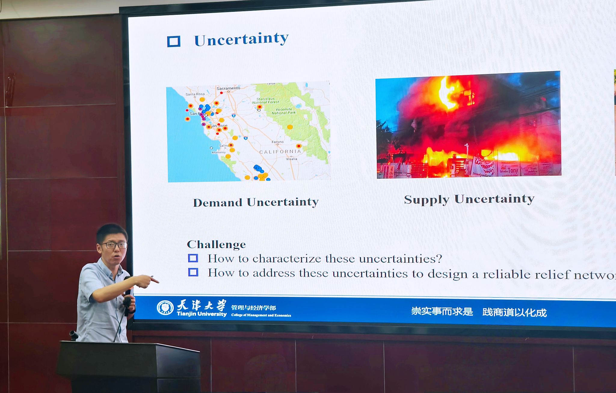 朱宁教授深入探讨了物流网络在灾难救援中的物资分配问题,阐述了其对灾害救援工作的深远意义和现实影响。他强调,灾前的物资分配策略与灾后的运输路径规划同等重要,对于提高救援效率和减少灾害损失具有决定性作用。在自然灾害等紧急情况下,如何实现快速而有效的响应,确保关键物资及时、准确地送达受影响地区,是当前物流网络设计和管理面临的重大挑战。朱教授指出,通过强化灾前交通网络和优化物流系统,可以显著提升救援物资的配送效率,在灾难发生时挽救更多生命。