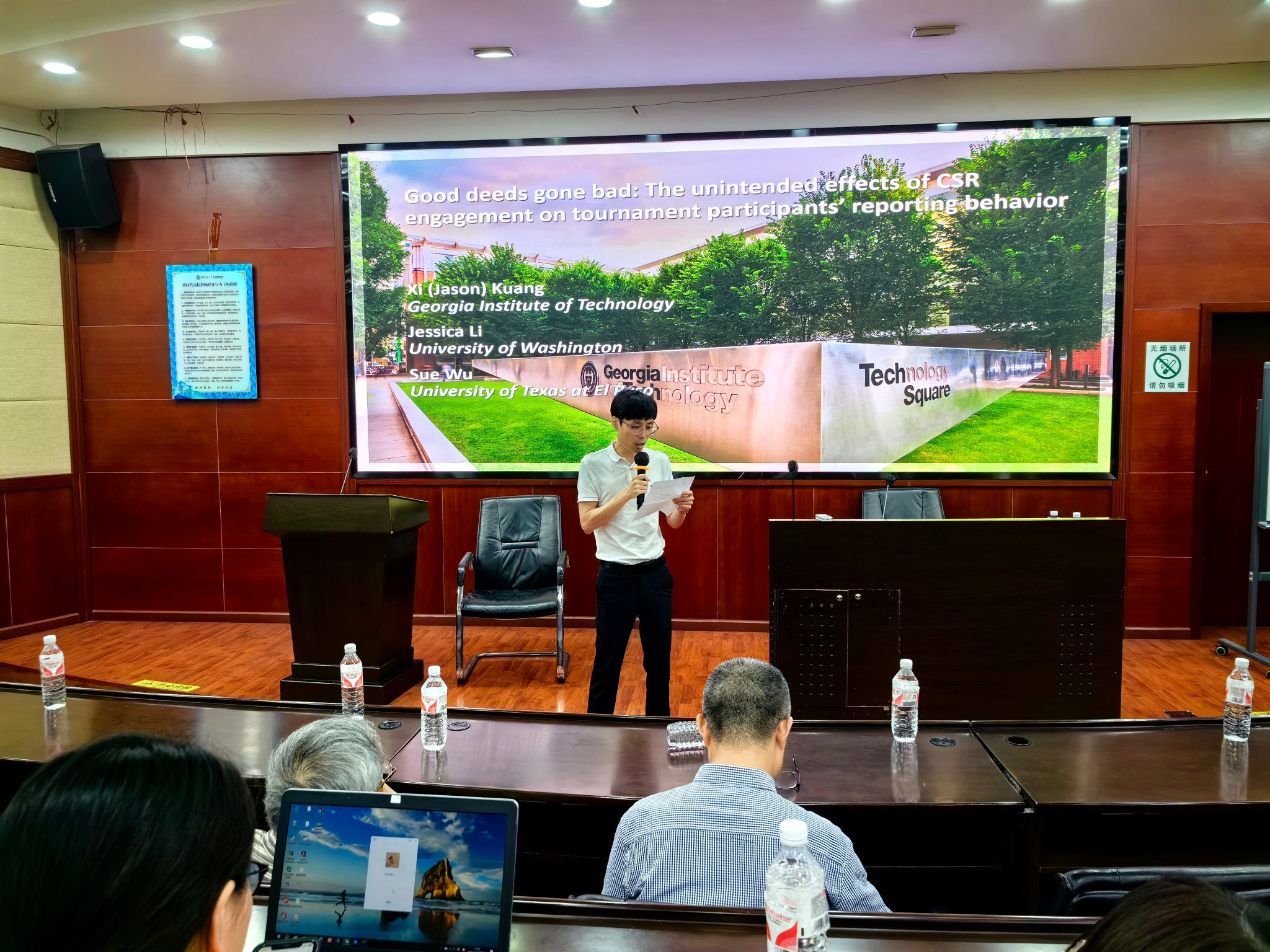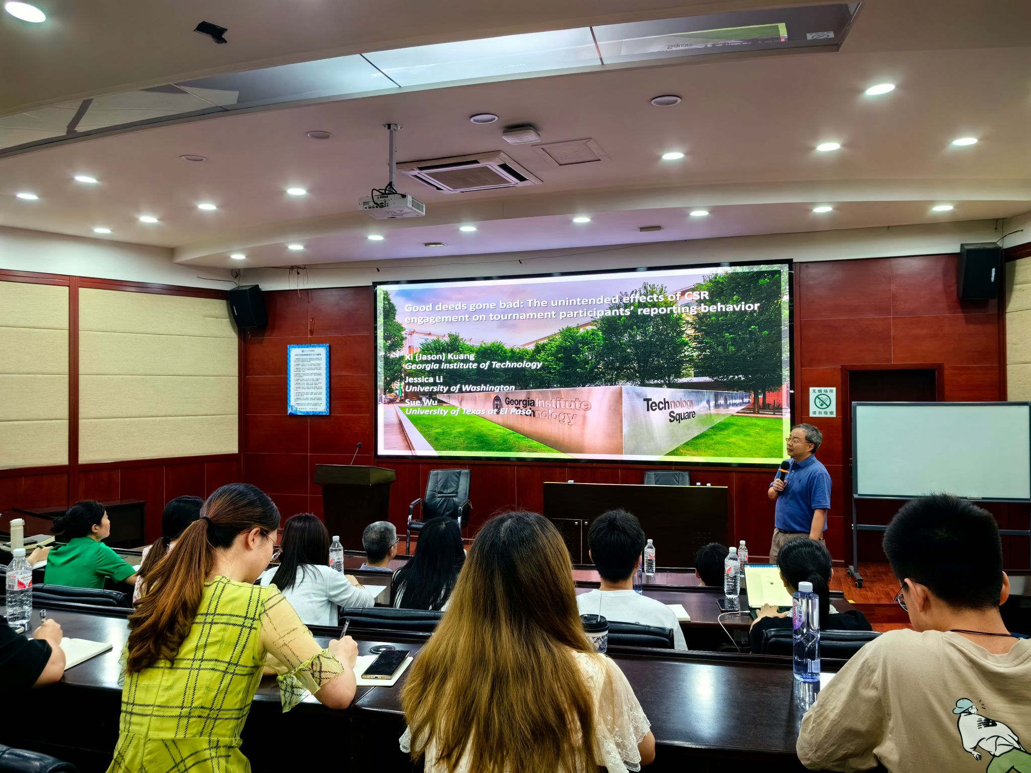 开展题为“Good deeds gone bad: The unintended effects of CSR engagement on tournament participants’ reporting behavior”的学术报告,副院长马锋主持了此次学术讲座,易游体育