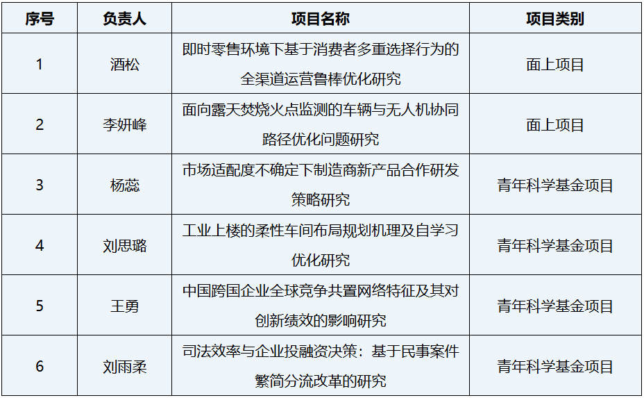 徐进老师获批一般项目1项,卢朝阳老师获批青年项目1项。