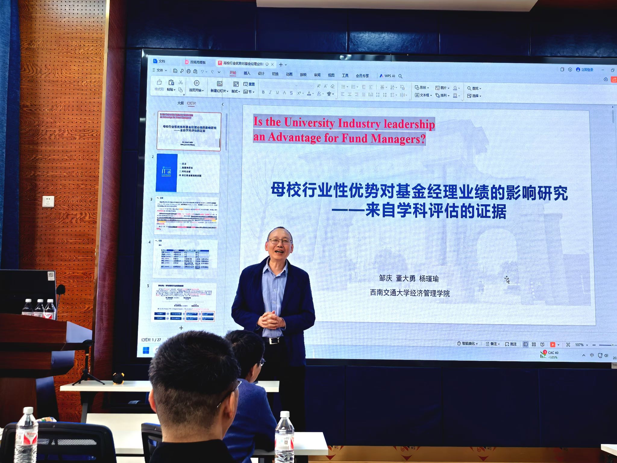 金融与财务学系的系主任董大勇教授,围绕“母校行业性优势对基金经理业绩的影响研究——来自学科评估的证据”这一主题展开,易游体育